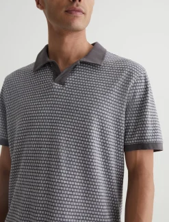 The Bryce Johnny Collar shirt is a classic short-sleeve polo tee with a relaxed neckline and pointed collar. An effortless way to bring pattern interest into your everyday wardrobe, it’s crafted from Luxe Heavy Jacquard and accented by solid grey trim.