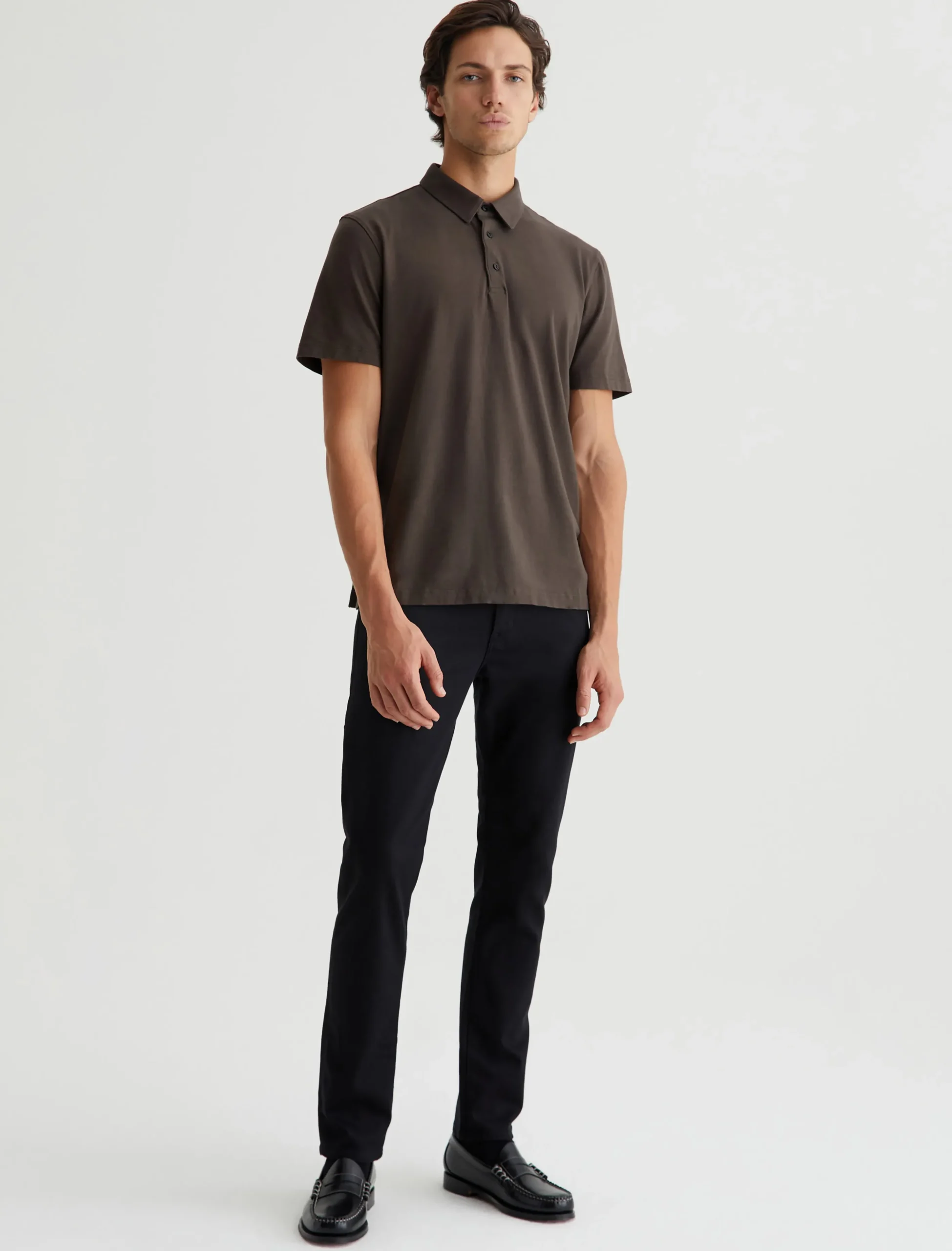 The Bryce Short Sleeve Polo in Stone Brown offers casual polish with the comfort of your favorite tee. The self-collar offers a modern take on the classic polo shirt. This style is made from our Light Cotton Jersey that’s knitted with both S-twist and Z-twist yarns for longevity and stability, preventing unnecessary twisting and torquing. Detailed with the AG logo embroidered at one sleeve.