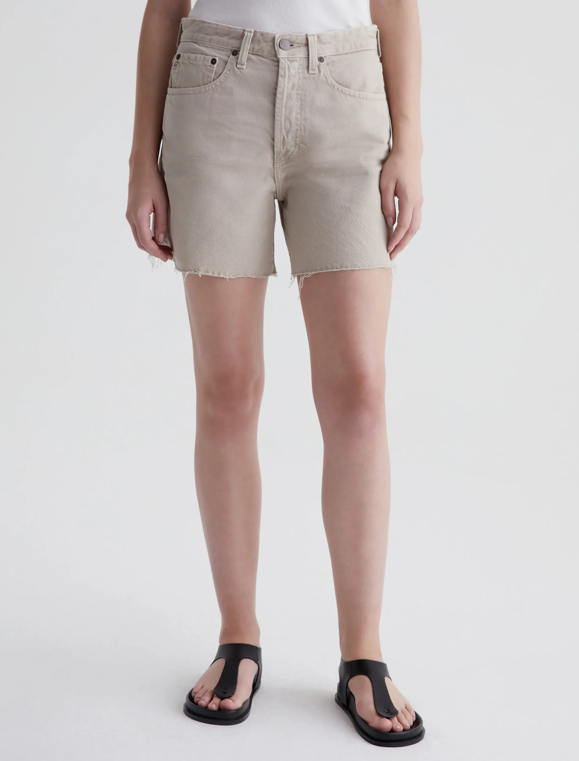 Our Clove Short features a high-rise baggy fit with a concealed button fly and raw hems that skim the mid-thigh. These vintage-inspired cutoffs are made from 100% cotton Natural Bull Denim in a faded khaki color and a 5-year AG-ed™ Denim finish. Soft, three-dimensional creasing adds to the naturally worn-in character.