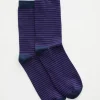 This sock is our classic crew sock. Featuring a stripe pattern, this pair has been knitted from a comfortable cotton blend and ribbed through the ankles.