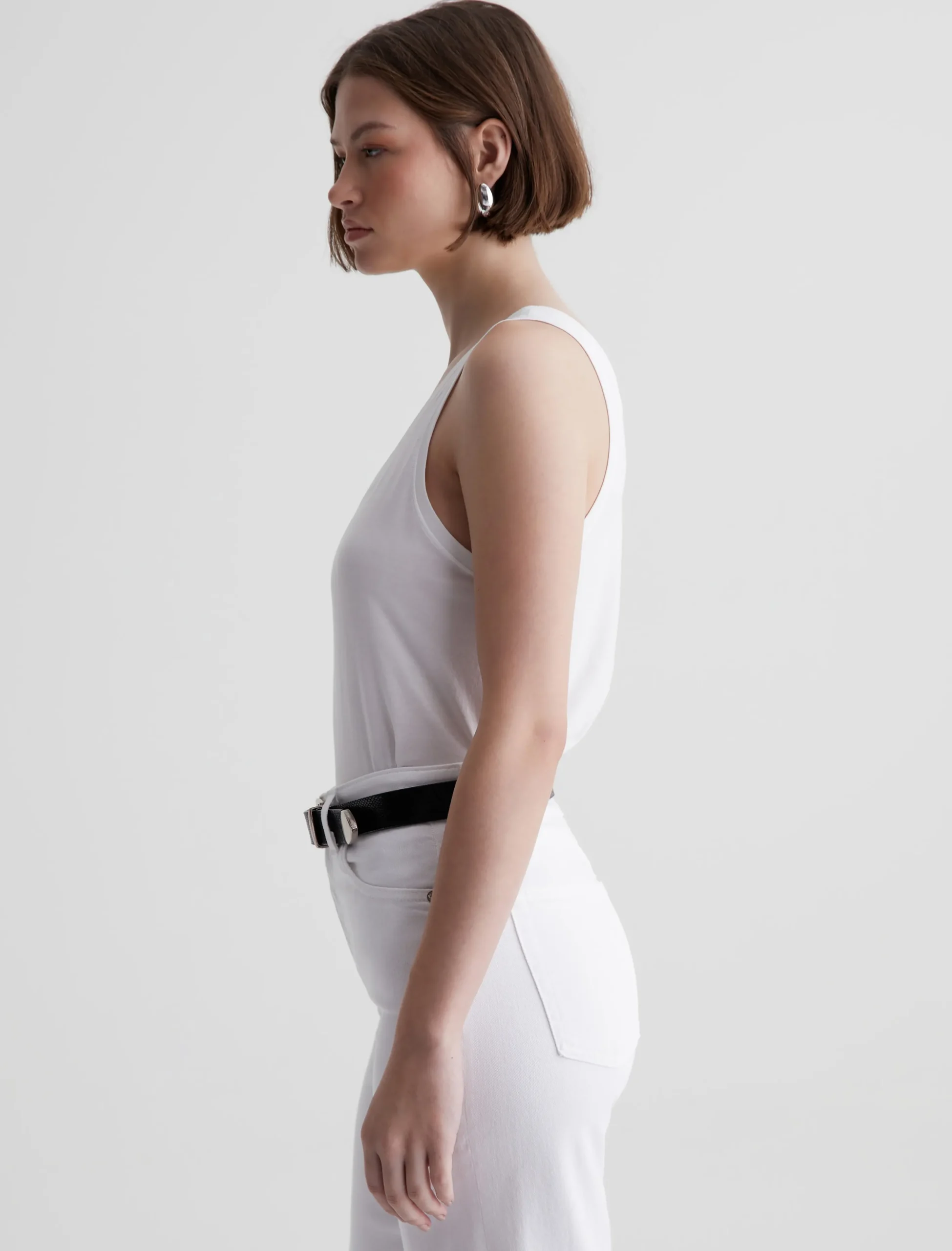 Simple and classic, the Esther Tank is an essential for layering in any season. The relaxed fit has a scoop neckline and rib trim. Made from white stretch-cotton jersey, it’s soft and lightweight with a semi-sheer finish.