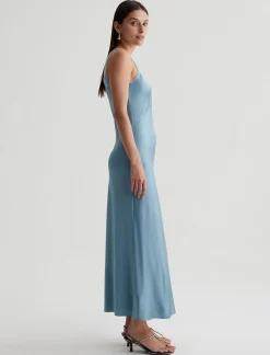 Simple yet elegant, the Khai tank dress is made from luxurious stretch silk in a tranquil blue shade. Defined by a graceful scoop neckline and diagonal seam detailing, it’s cut on the bias for a slinky fit that glides against the body.
