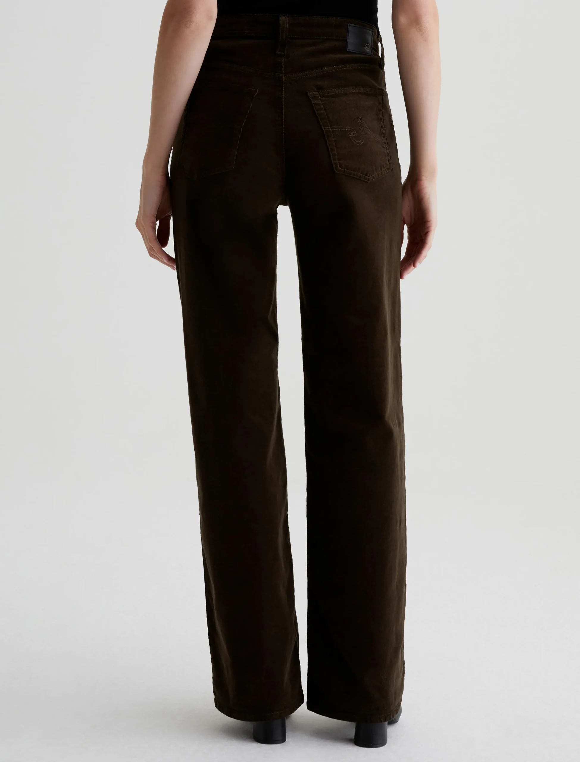 Our Kora wide-leg corduroy pants have an ultra-high rise and a loose, easy fit through the legs. This pair features a rich brown shade and a soft, plush feel in 8.3 oz. Novel Stretch Mini Corduroy from Italy.