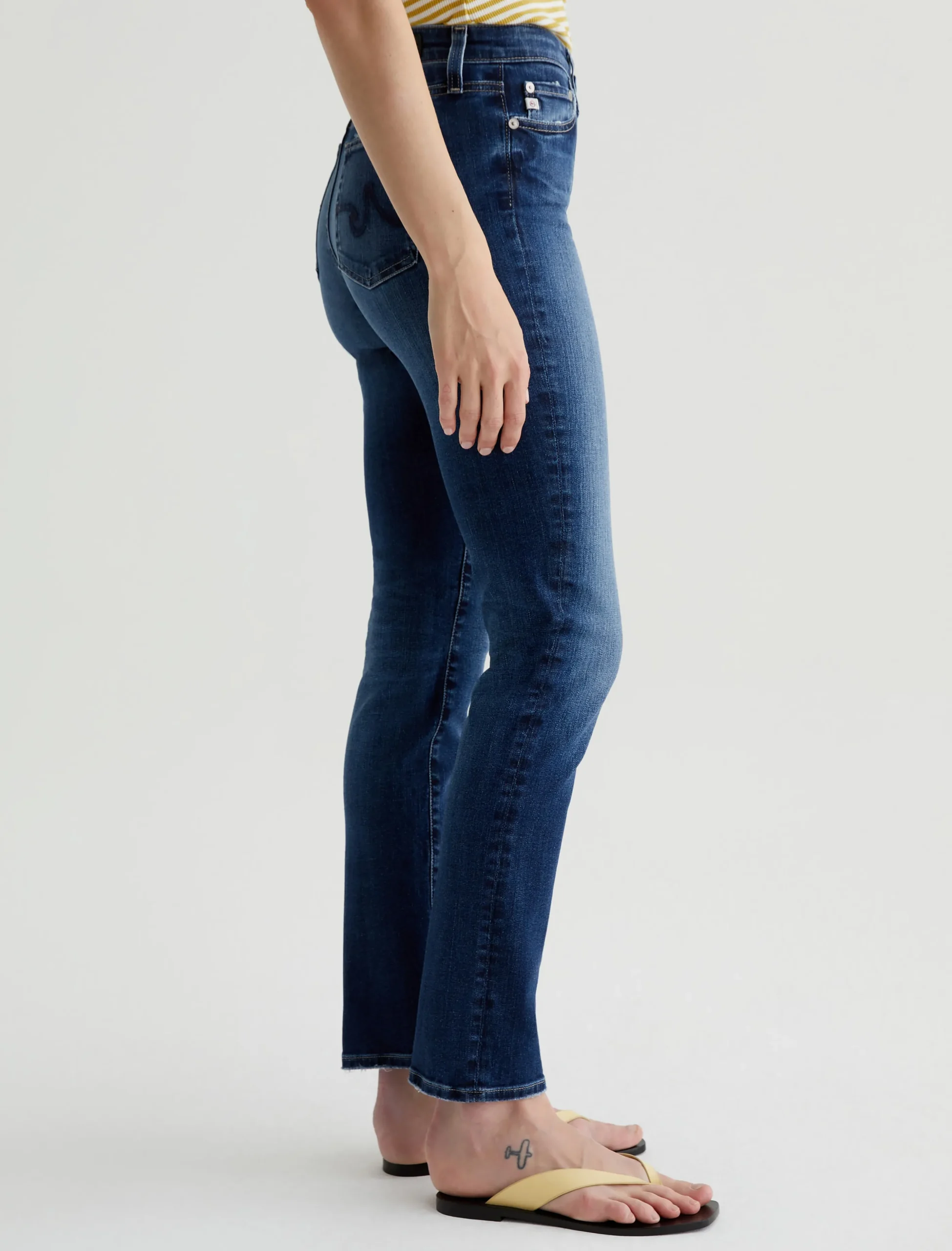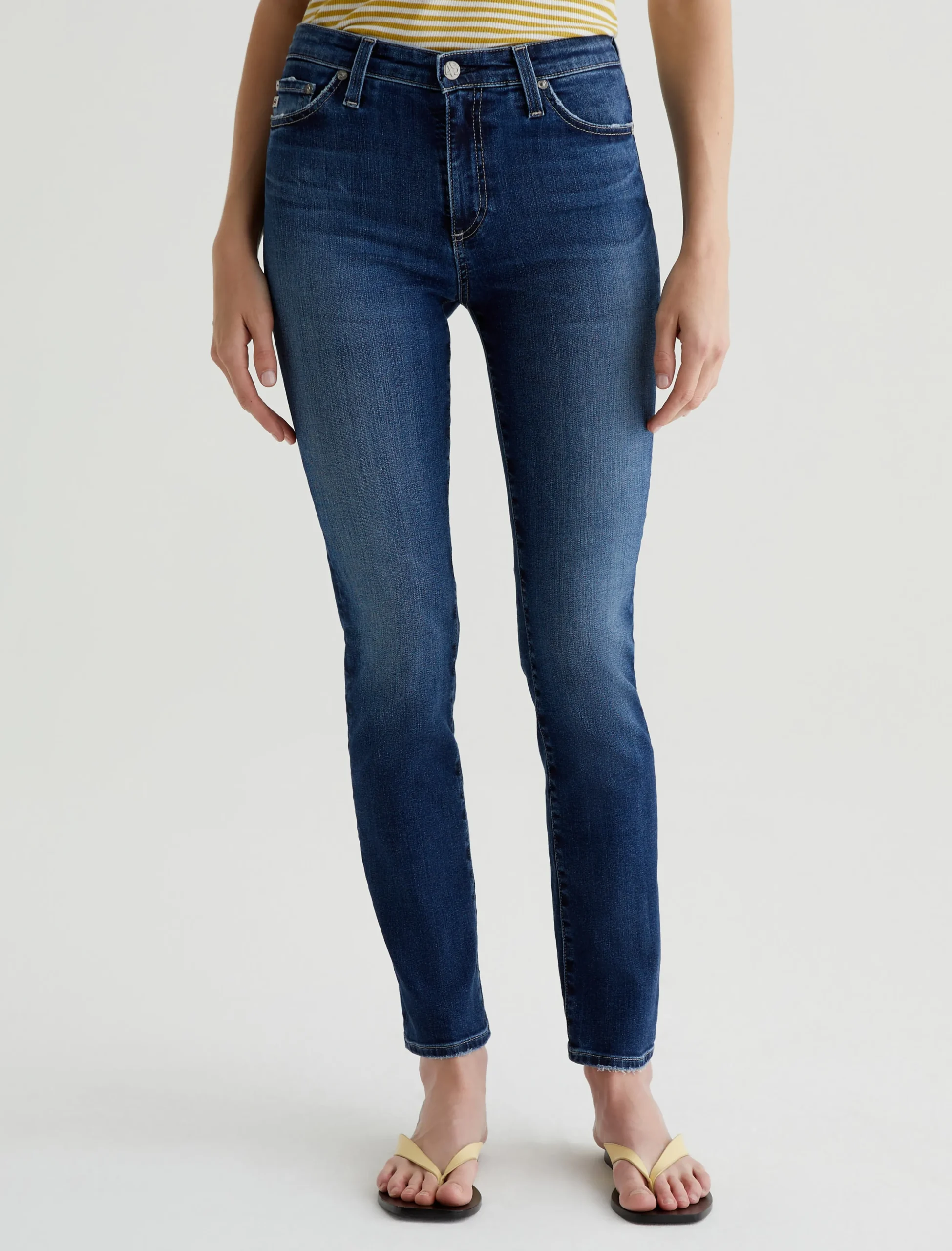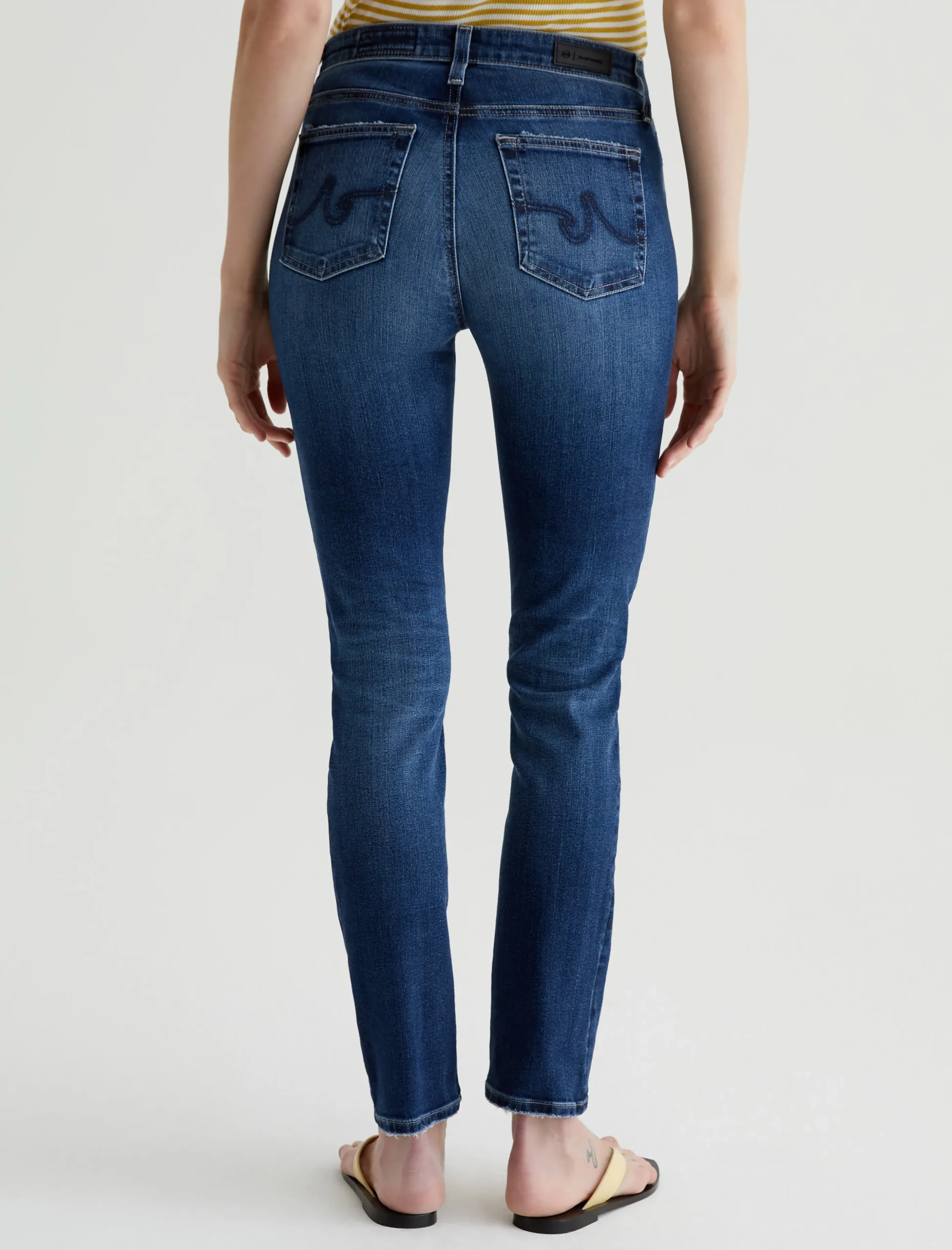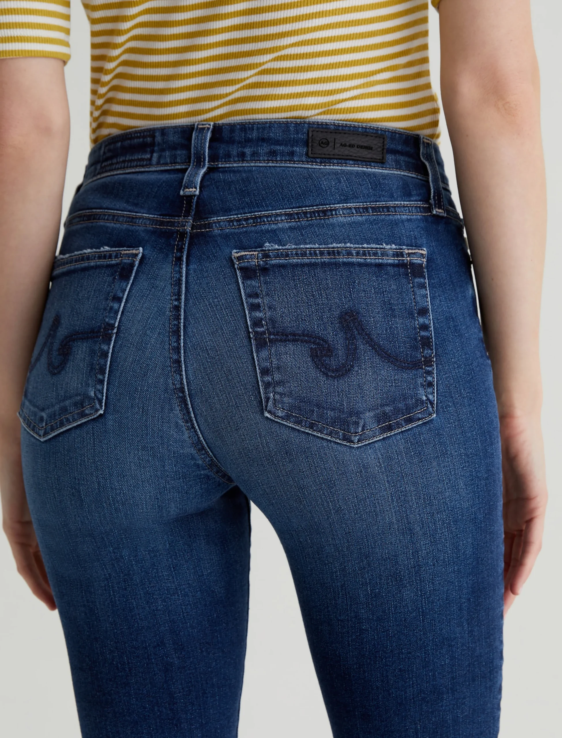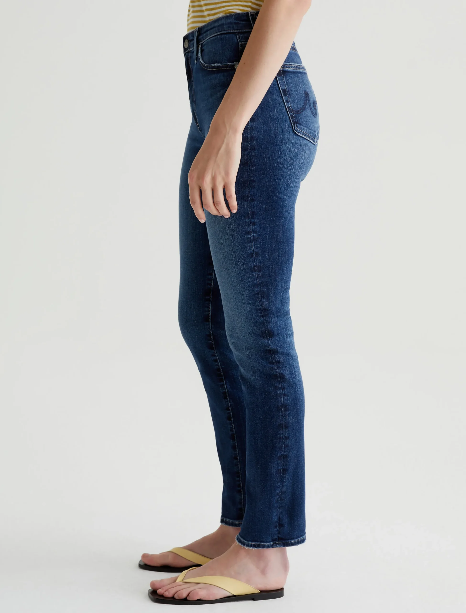 Mari is a mid-rise slim-straight jean in a dark indigo wash with an 11-year AG-ed™ finish. It’s got faded details, distressed pocket edges, and gentle wear at the hems for an authentic lived-in character. Mari has a mid-rise waist and fits easy around the hips, complete with a straight-leg silhouette that slims down at the leg openings. These slim-straight women’s jeans are cut from 10 oz. Rouge Advanced Stretch Denim for a comfortable, shape-hugging fit. Contrast stitching accents the classic five-pocket design.
