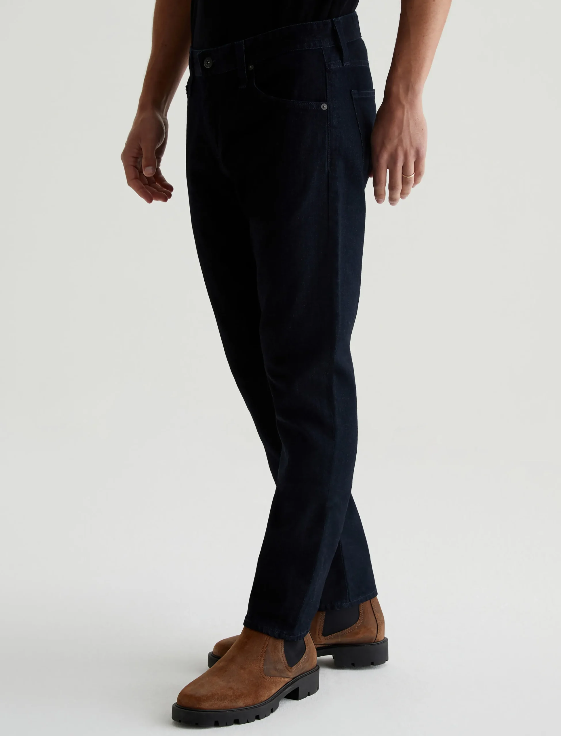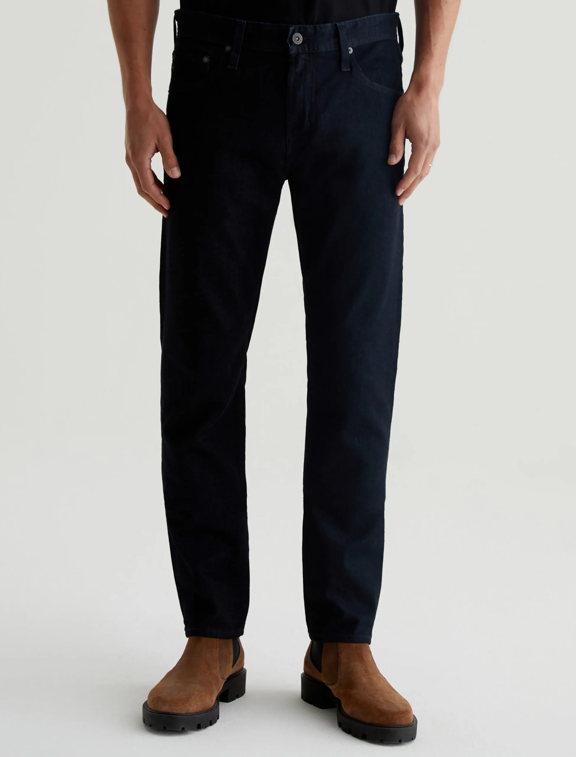 The Tellis modern slim jean for men features a fitted upper block and tapered leg opening—complete with a dark wash. This men’s pant is designed in 11 oz. Lead Denim for a luxurious feel and premium look.