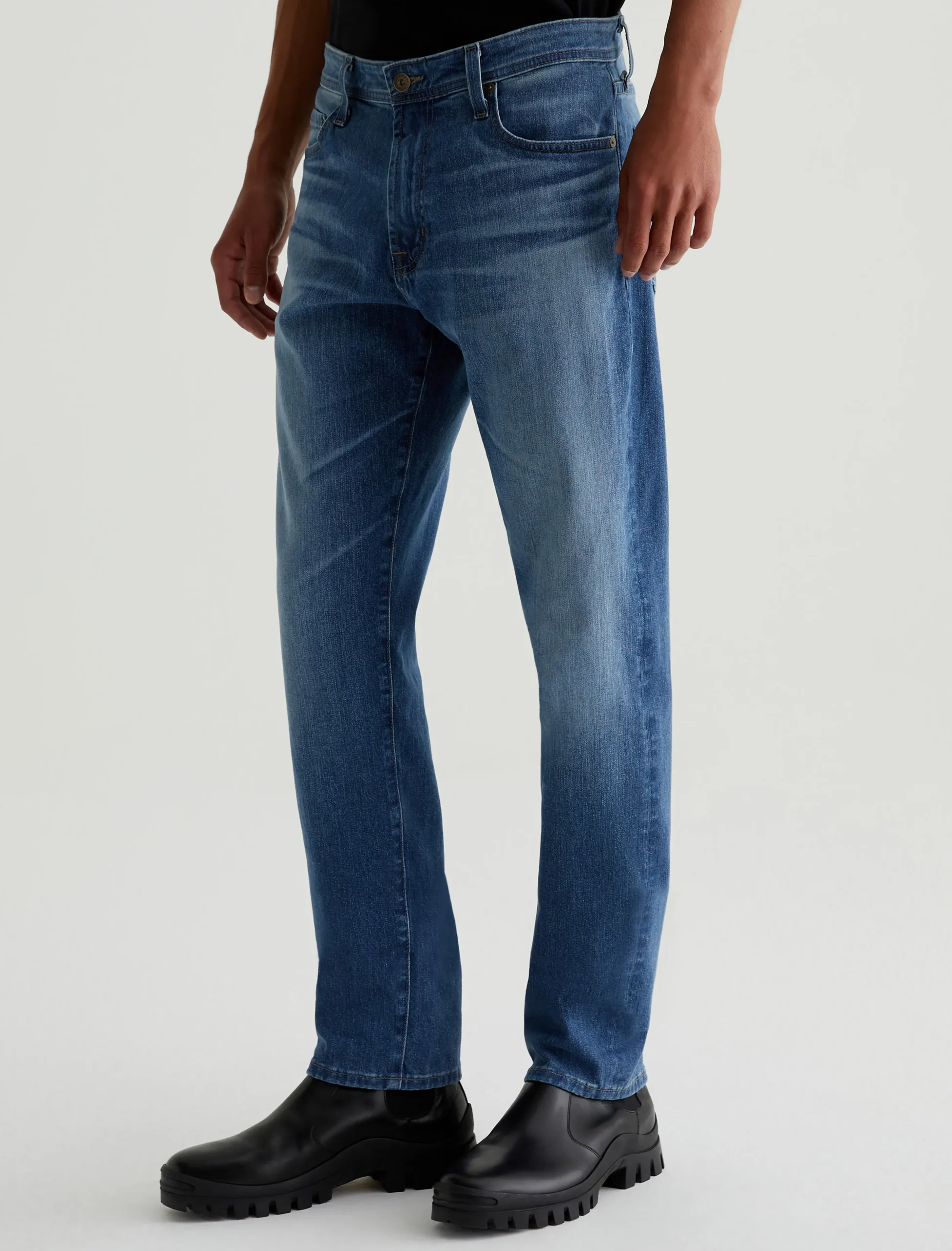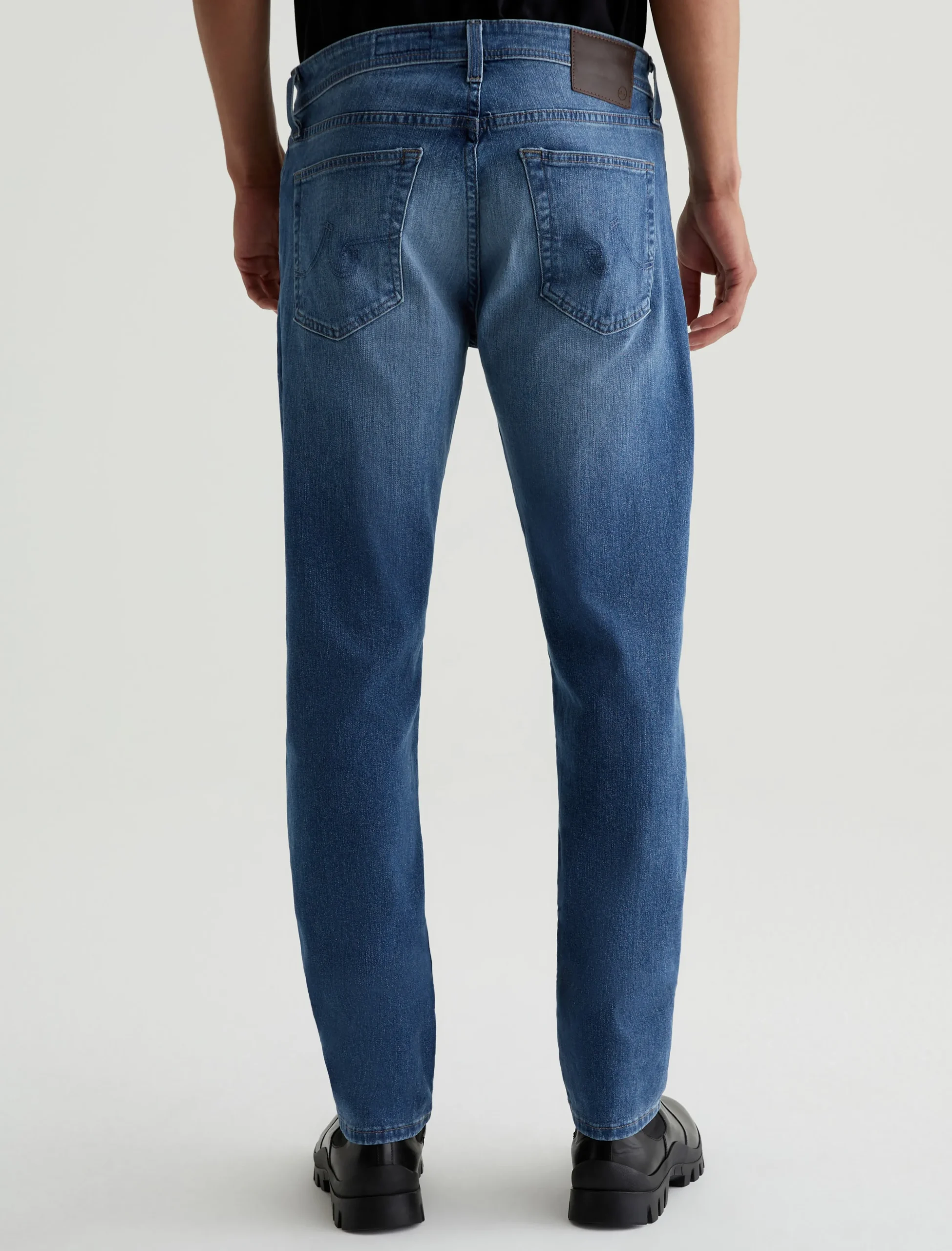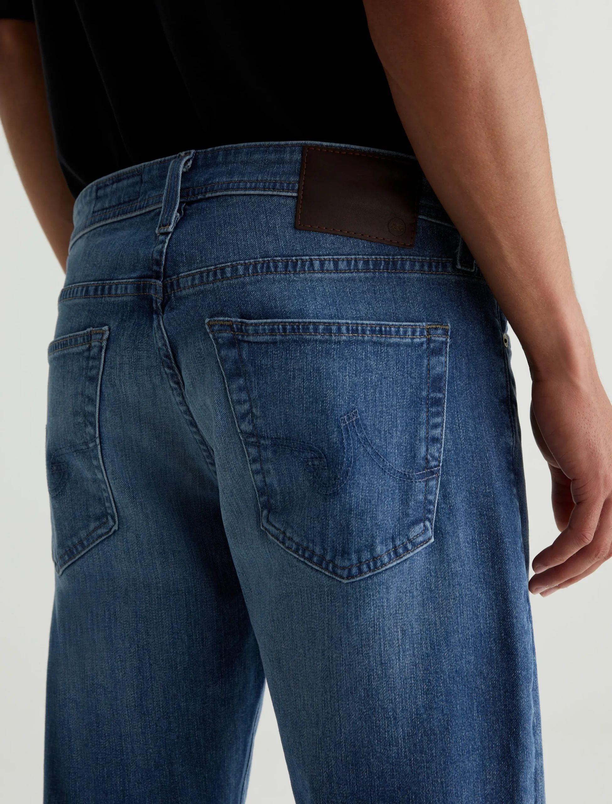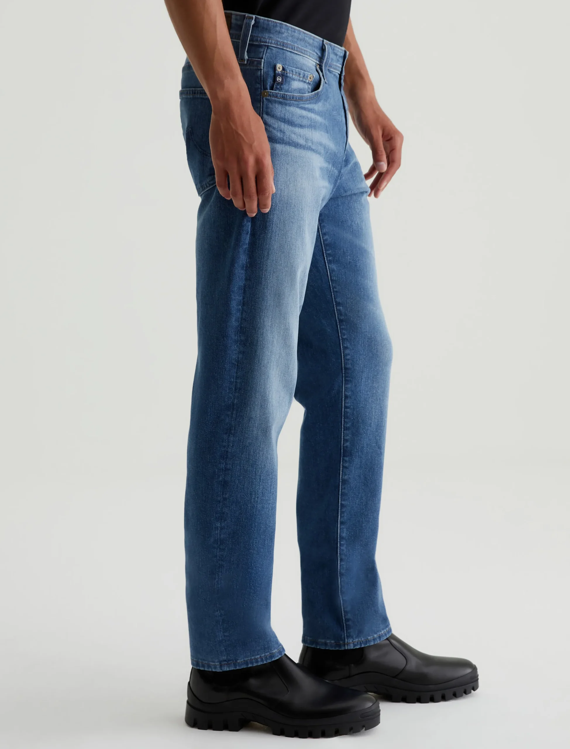 Tellis is a modern slim in a medium indigo wash with fading and whiskering. The style has a fitted upper block and a tapered leg opening. These men’s slim-fit jeans come in 9.4 oz. Hyper Soft Indigo Denim, an exclusive AG Cloud Soft Denim™ fabric. The special left-hand twill construction allows the yarns to gently relax and untwist for a supple, velvety feel that gets softer with every wear. It’s blended with dual-elastic performance fibers, offering premium stretch and recovery.