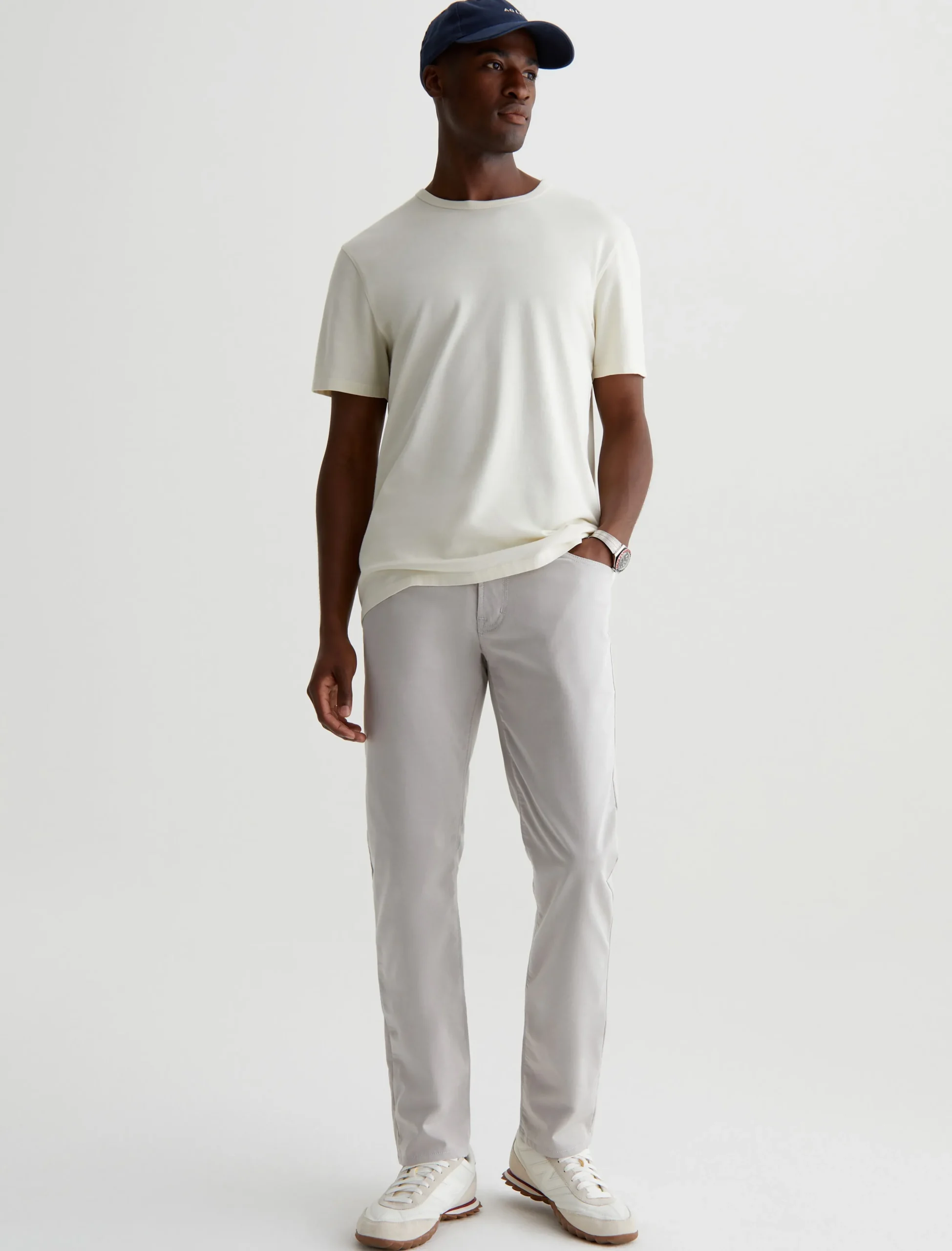 Our Tellis Airluxe™ modern slim-fit pants move with you in 5.9 oz. Commuter Performance Sateen with technical stretch. Featuring a fitted upper block and a tapered cut through the legs, these ultra-lightweight pants have a soft, polished finish and a pale grey shade.
