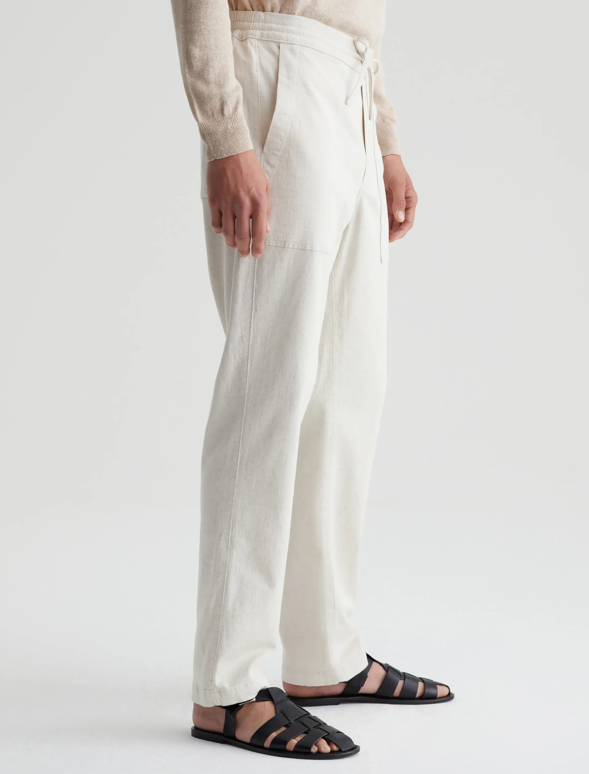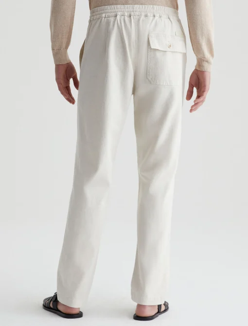 Our Wells Drawstring pants have a light, summery feel in linen-blend stretch twill. Cut for a relaxed fit, this pull-on style has front fatigue pockets and a partially elasticized waistband. Buttoned flap pockets at the back finish the look.
