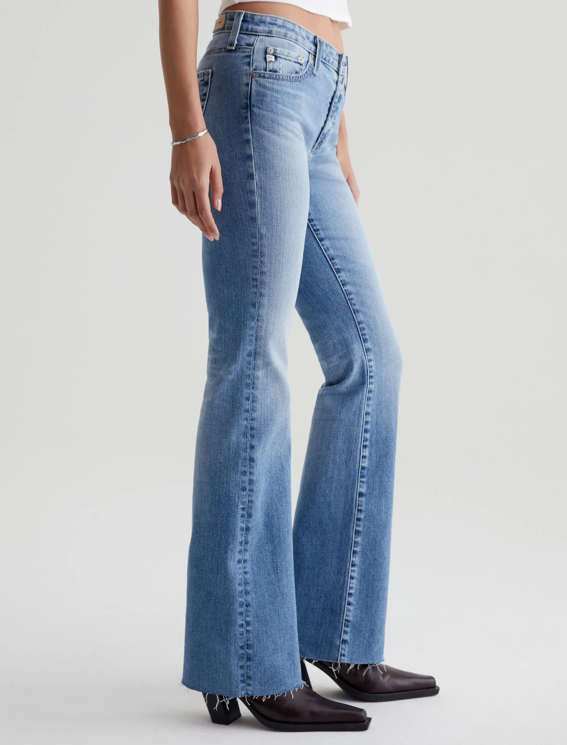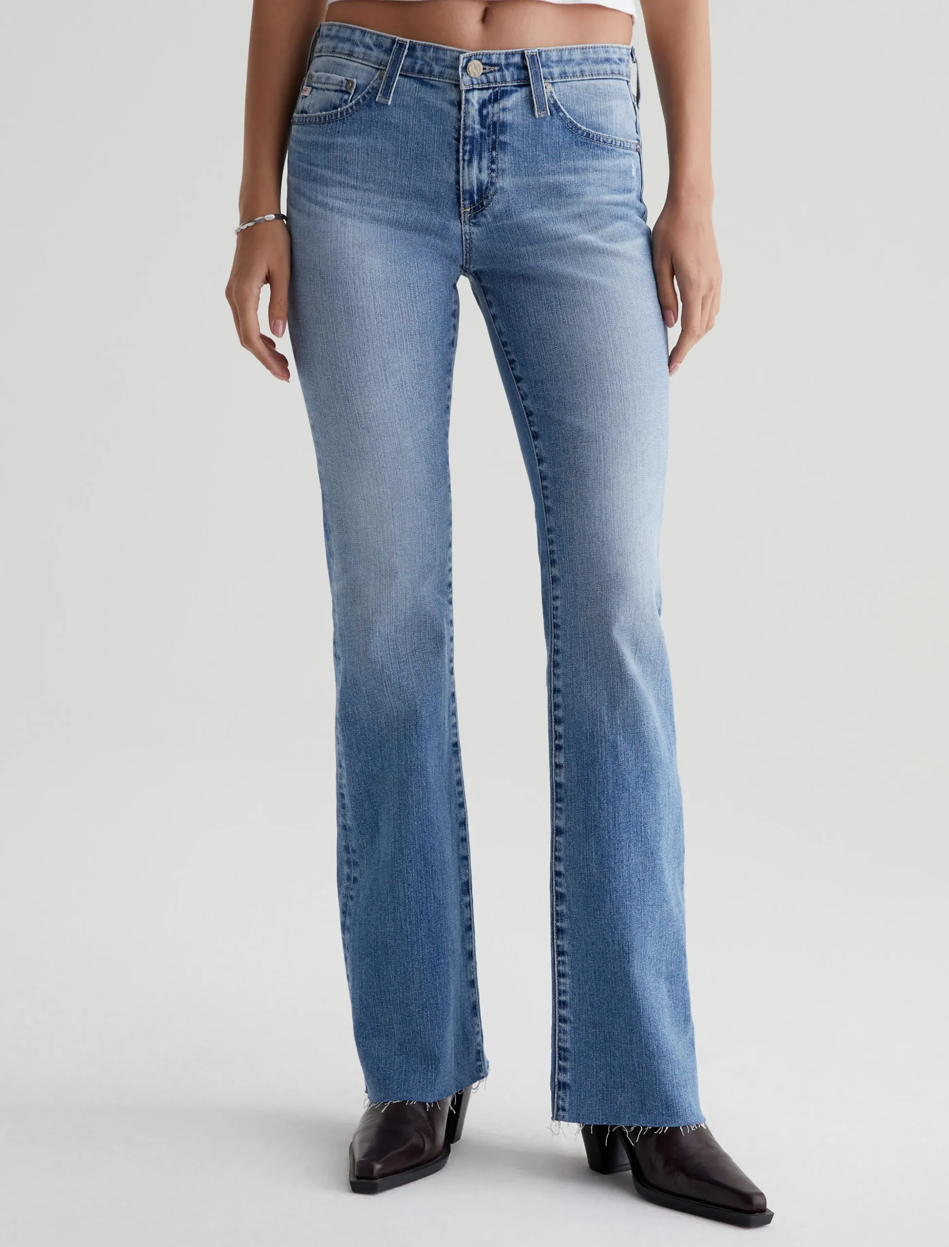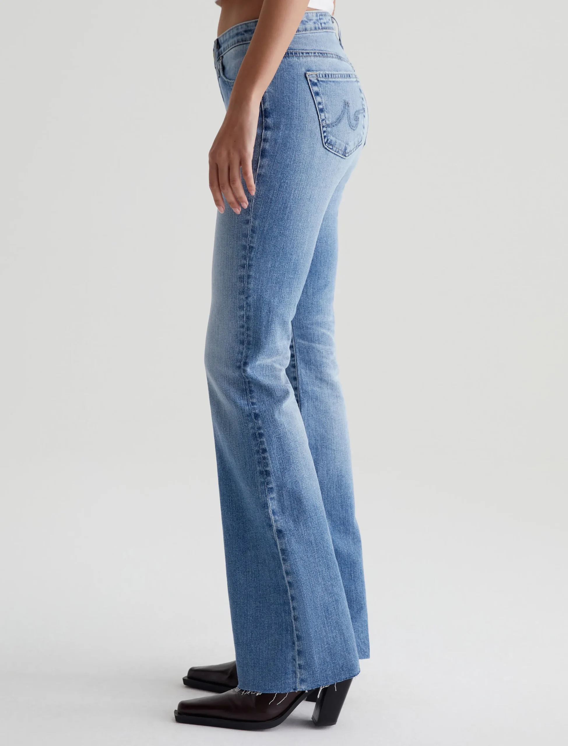 Our Angel Extended low-rise bootcut jeans feature a longer inseam and raw hems. These 5-pocket women’s jeans are designed in 11 oz. Lead Denim with comfort stretch and an AG-ed™ Denim light indigo wash that’s faded to emulate 22 years of wear. Subtle distressing softens the pocket edges.