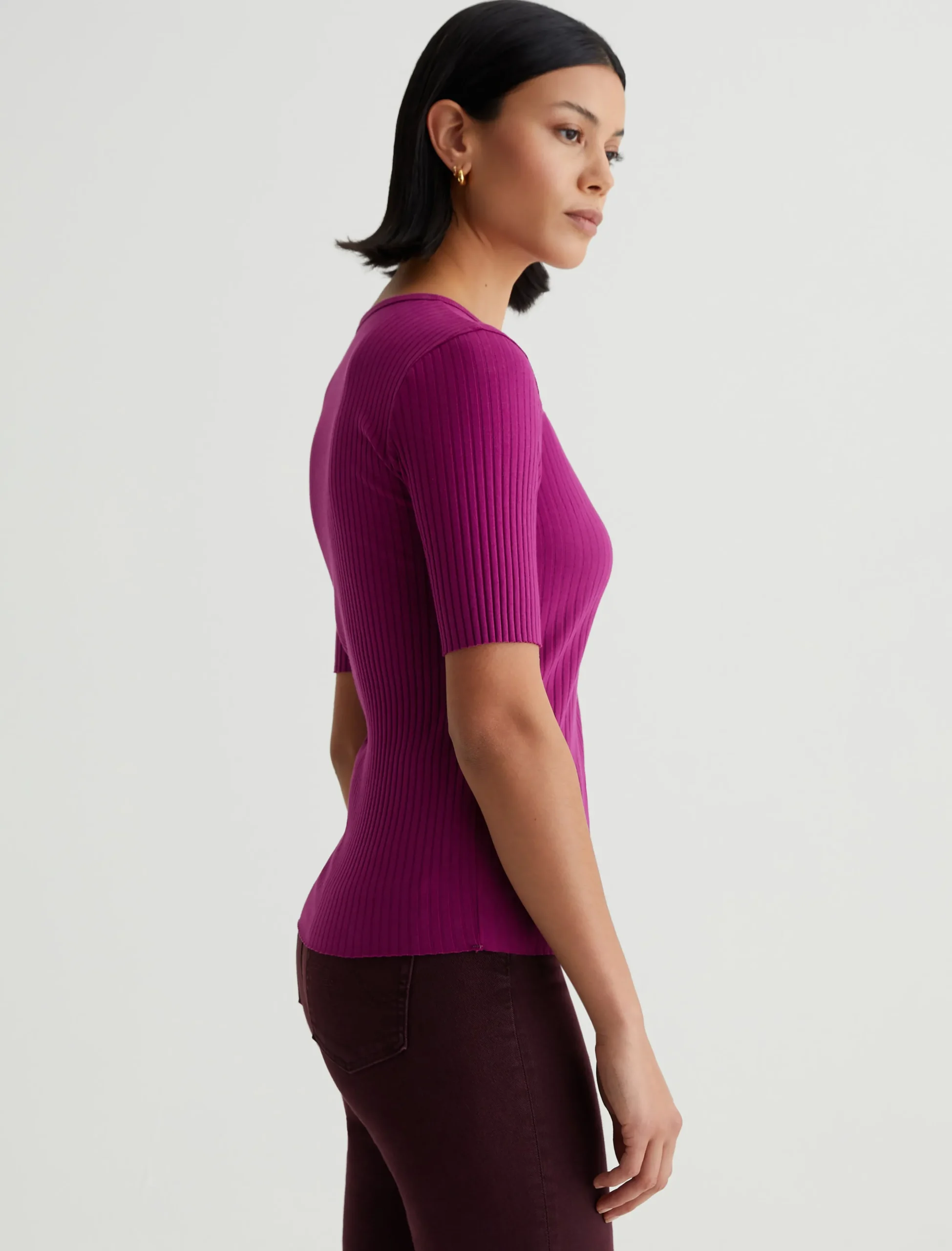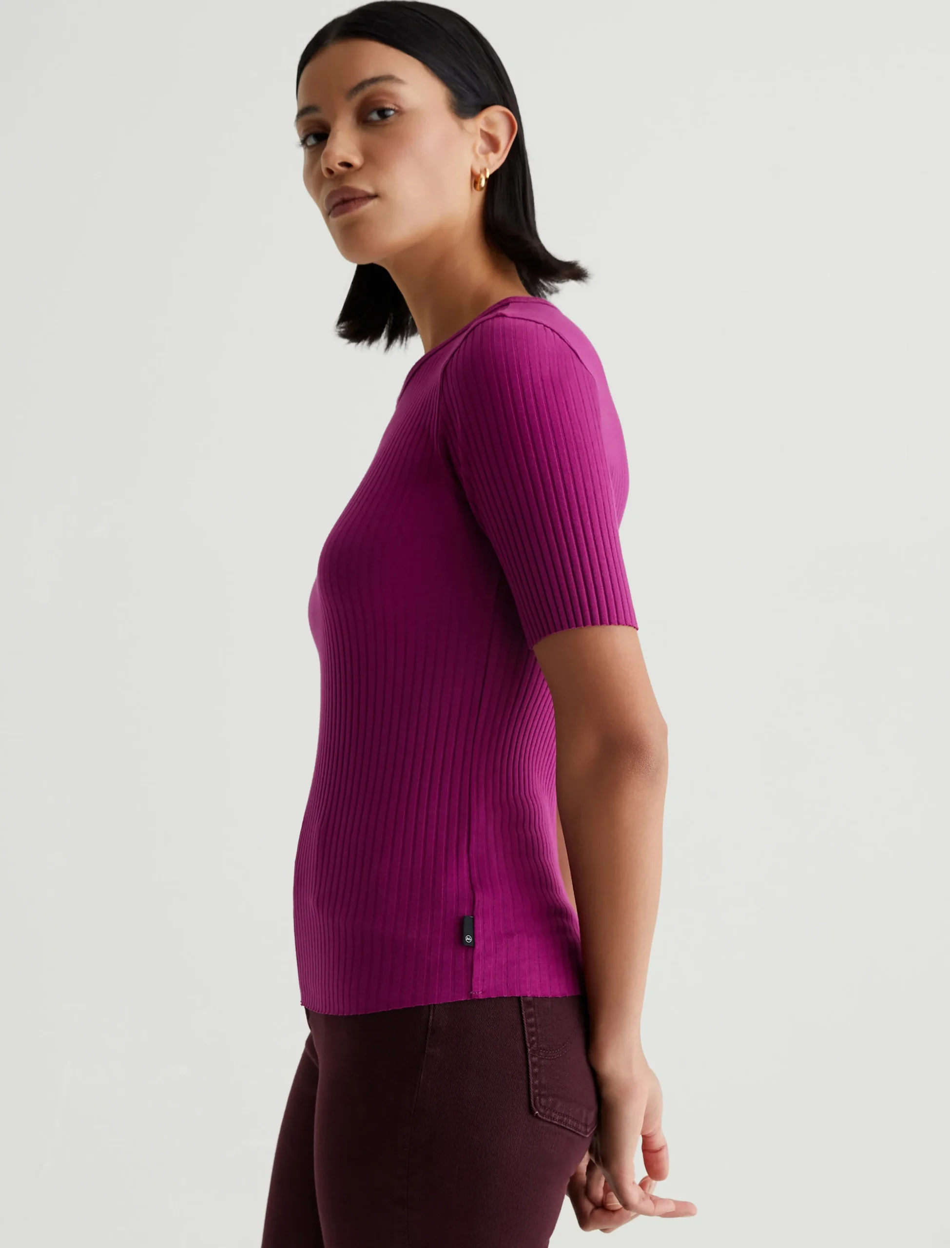 The Astley Top is a slim crewneck tee that fits close to the body in a comfortable stretch-cotton rib knit. Done here in Twilight Magenta, it’s an instant classic to wear year-round, whether on its own or layered.