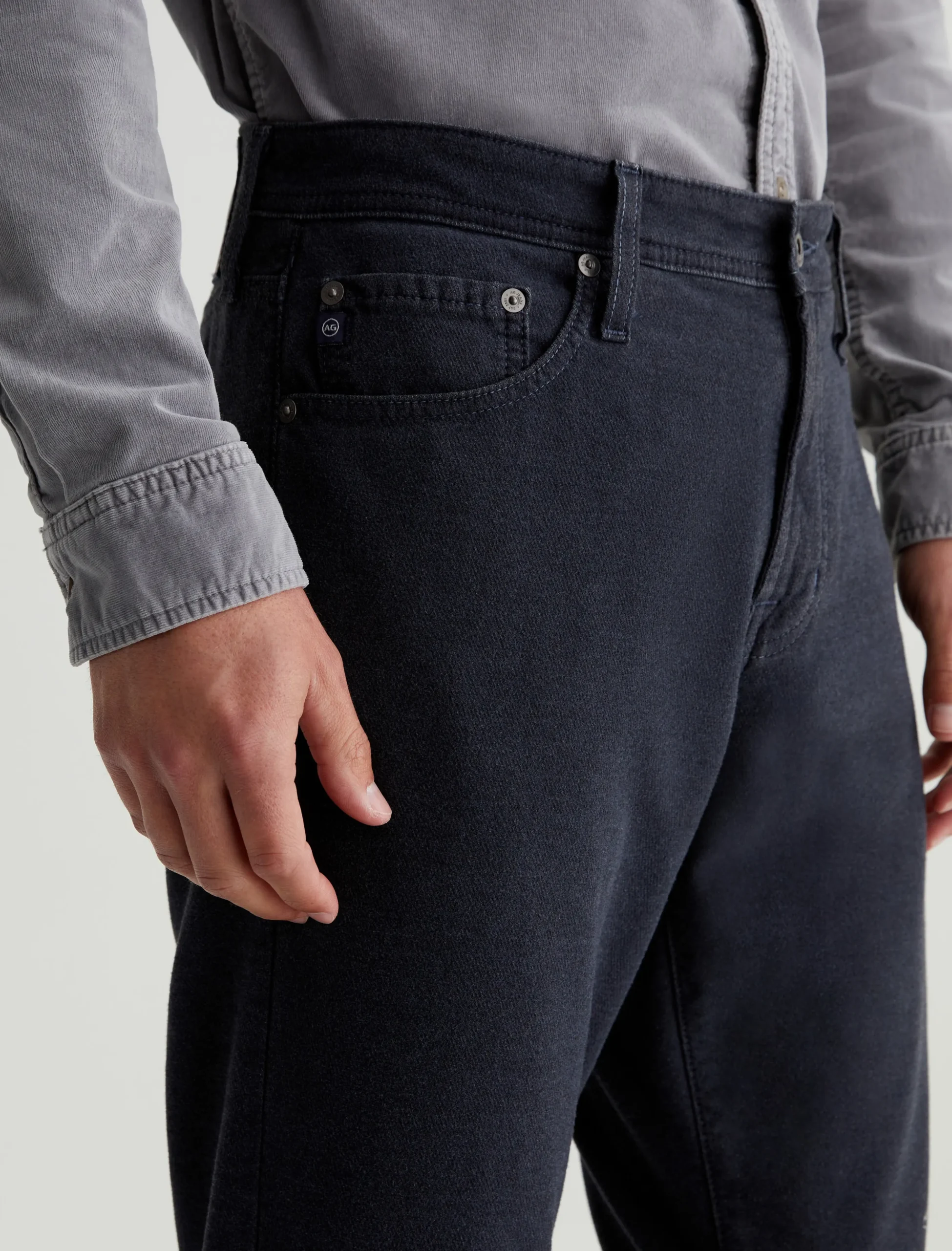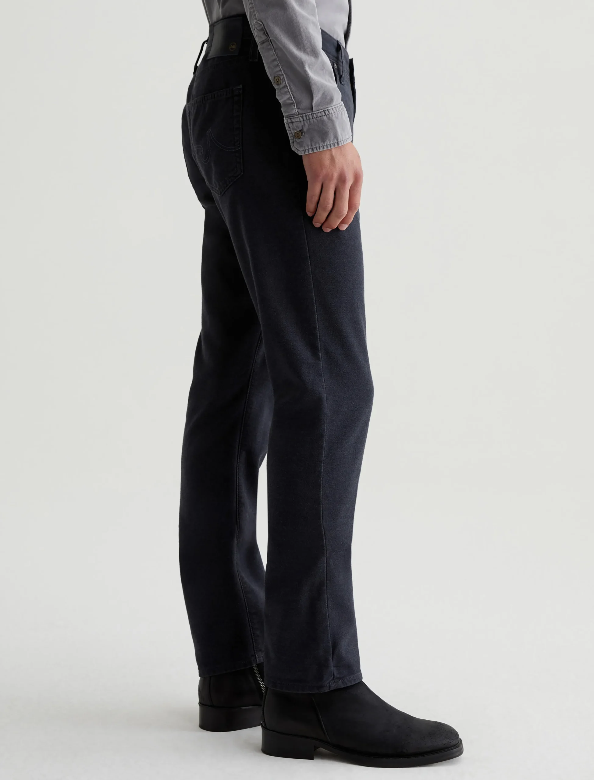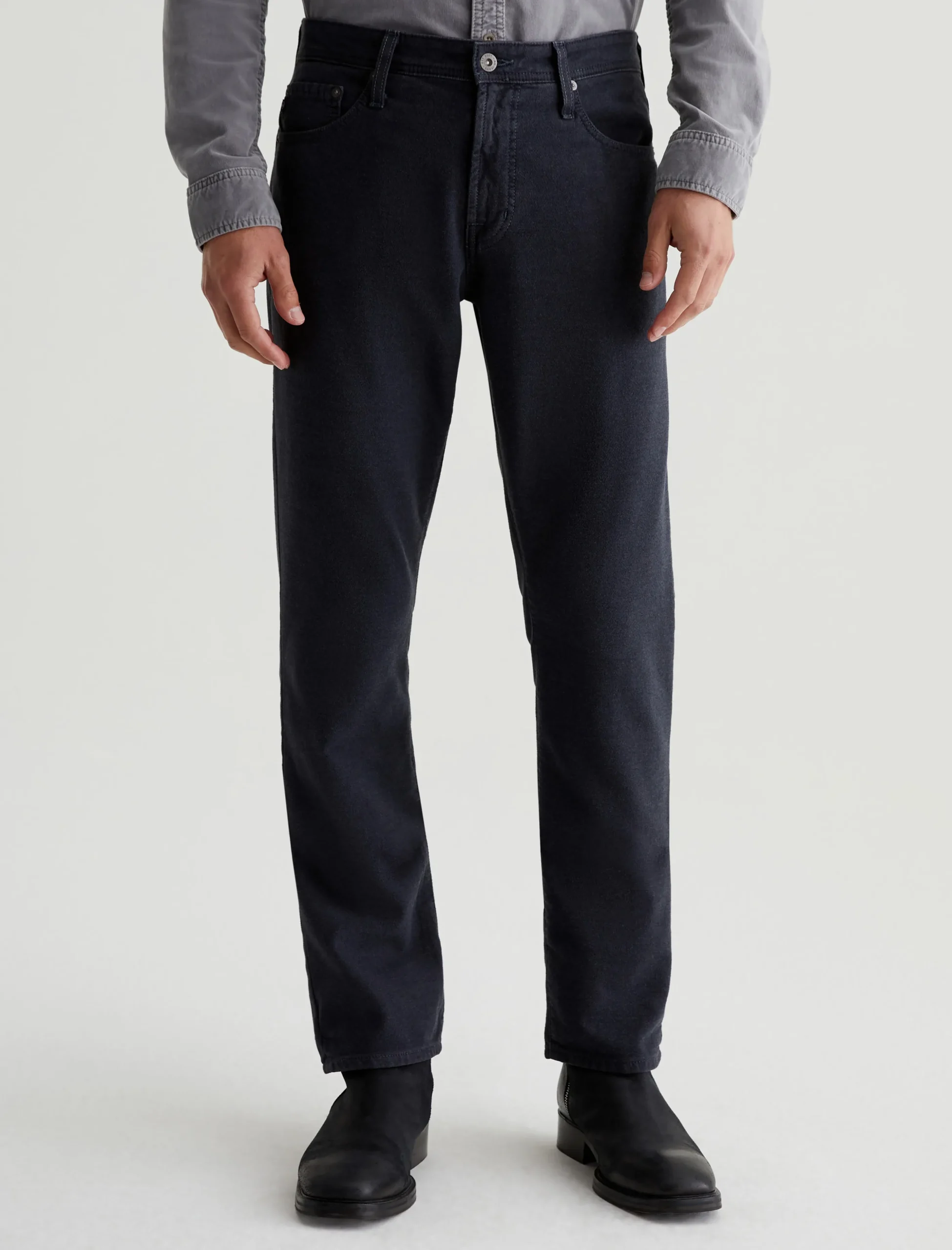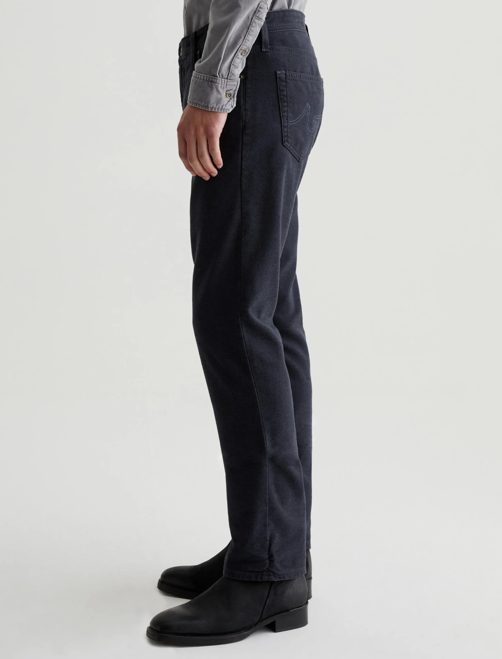 Our Everett slim-straight men’s pants have a soft, comfortable feel in 7.96 oz. Brushed Stretch Cotton. Sulfur-dyed for a dark-blue shade, this pair features a slightly faded look with subtle variations of color along the seams and edges. The style has a mid-rise waist and a straight fit that’s relaxed from hip to knee before slightly tapering at the leg opening.
