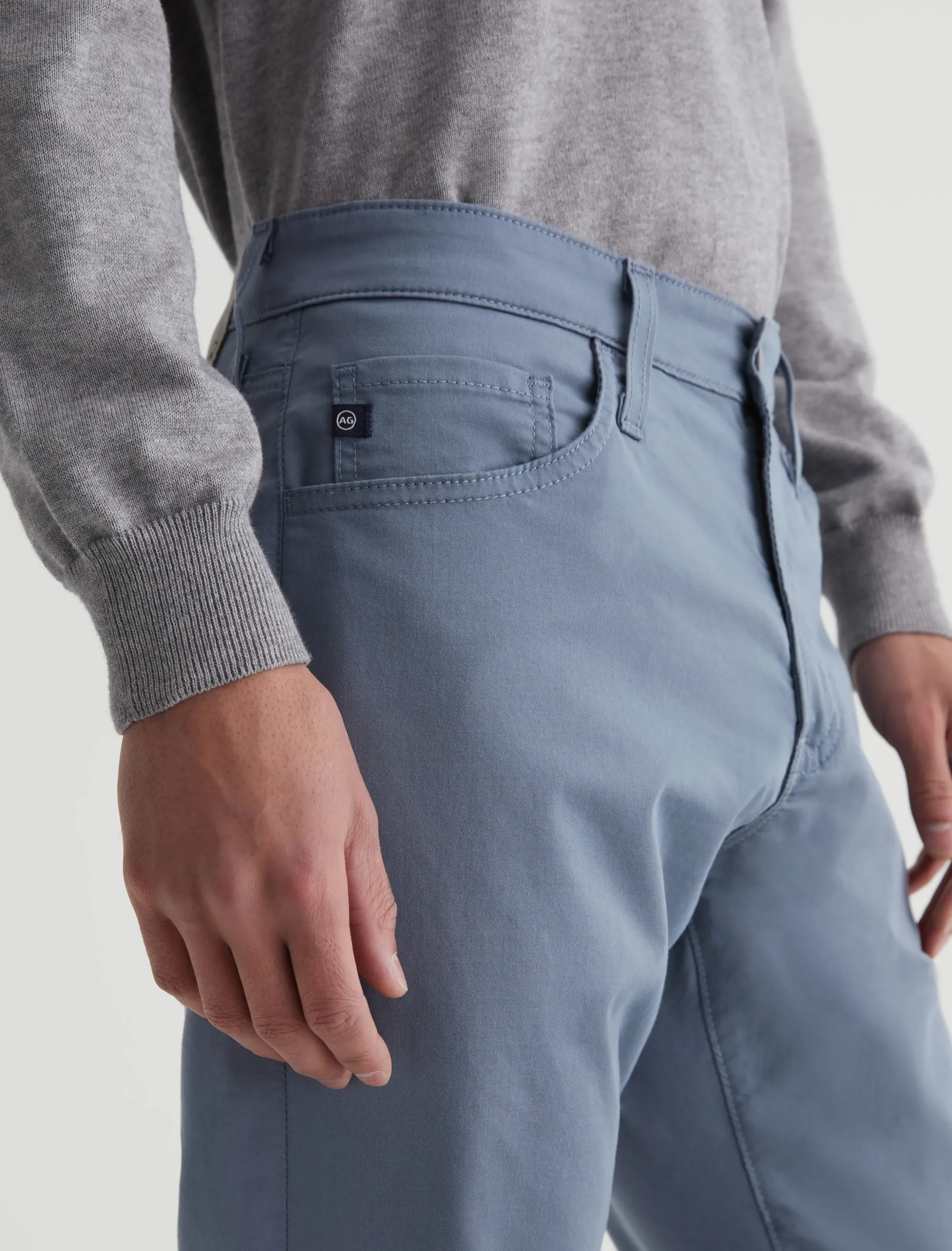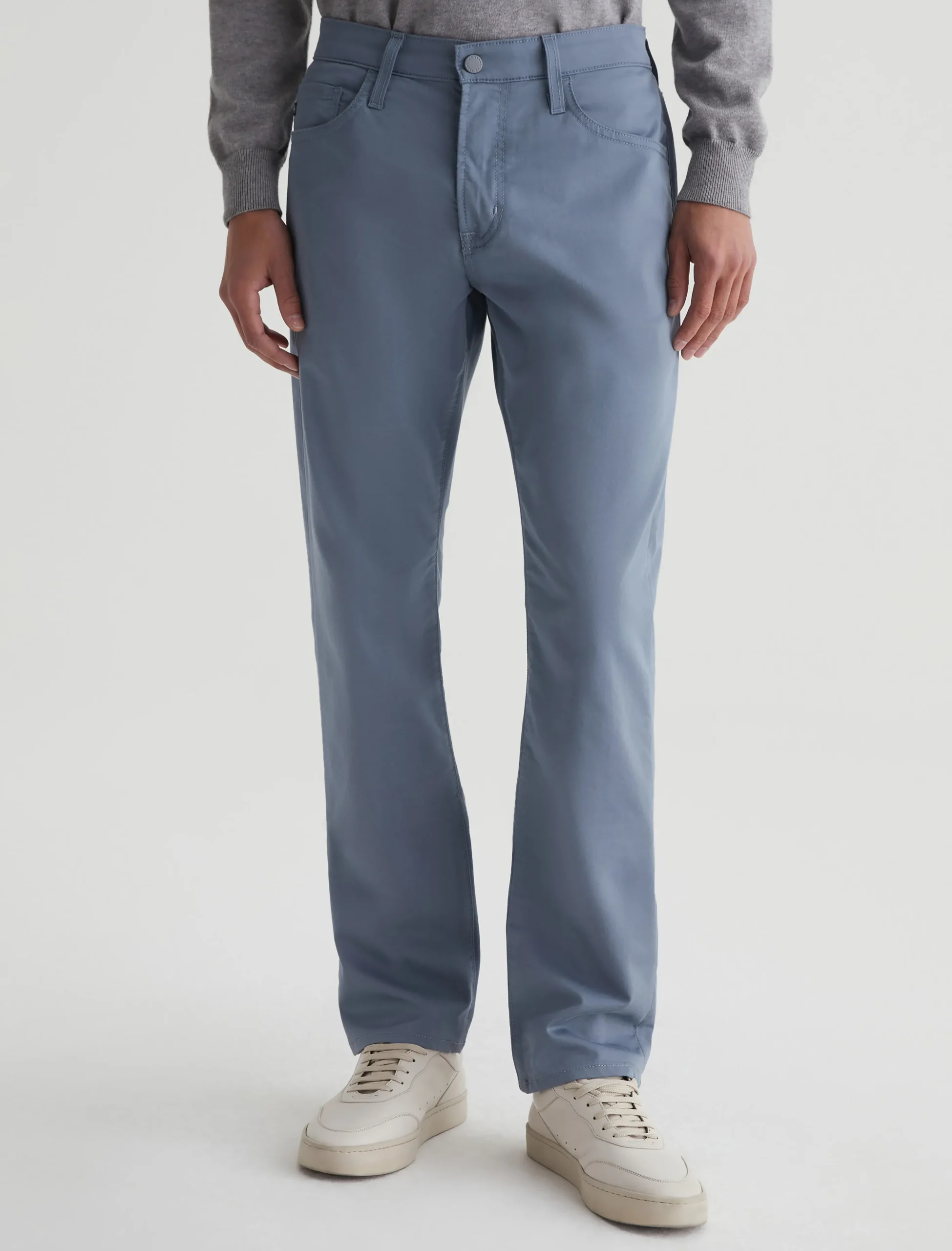 Our Everett slim straight offers exceptional comfort in 5.9 oz. Airluxe™ Commuter Performance Sateen with active stretch and a refined feel. Updated by a light blue shade, this five-pocket style has a mid-rise waist and a straight fit that’s relaxed from hip to the knee before slightly tapering at the leg opening.