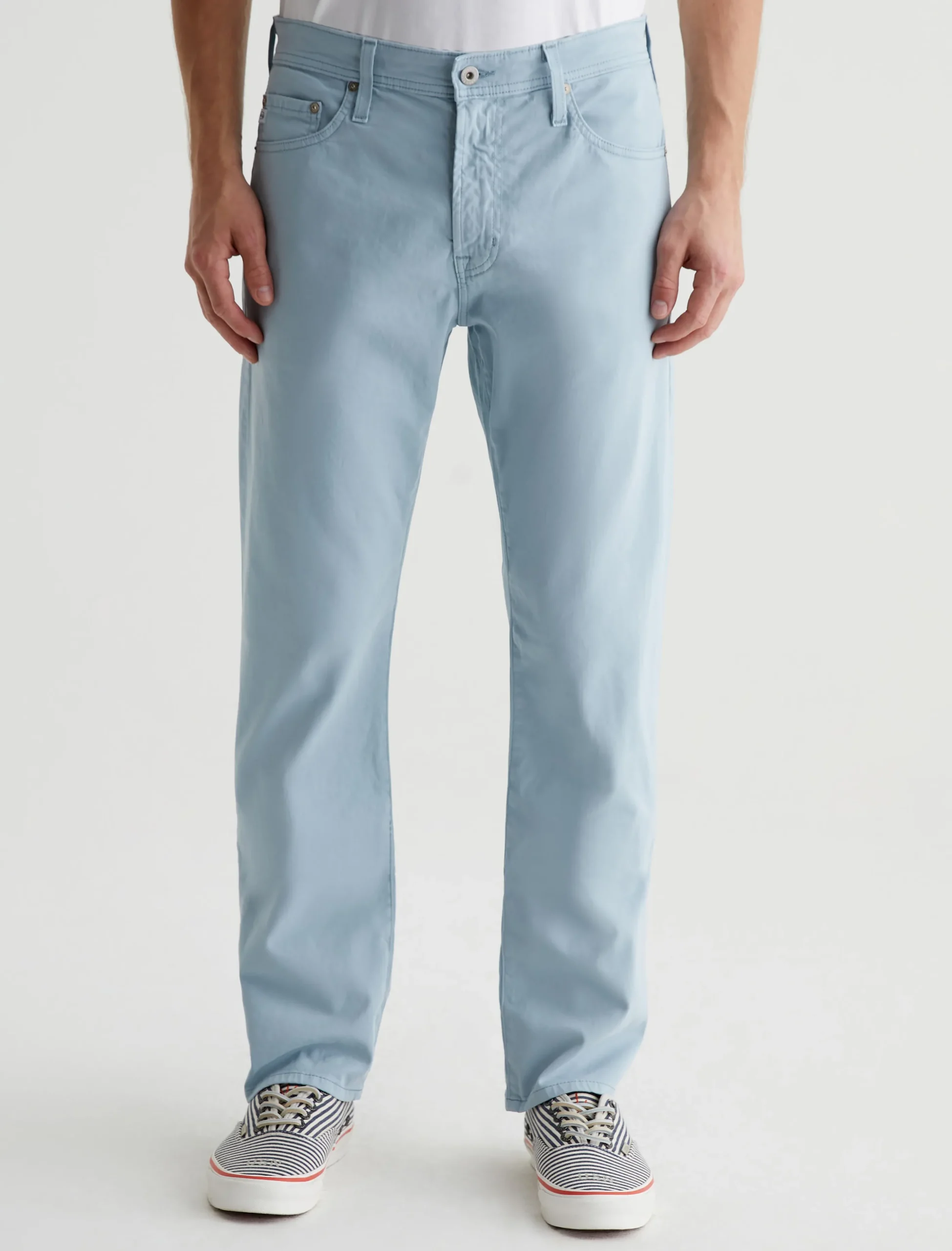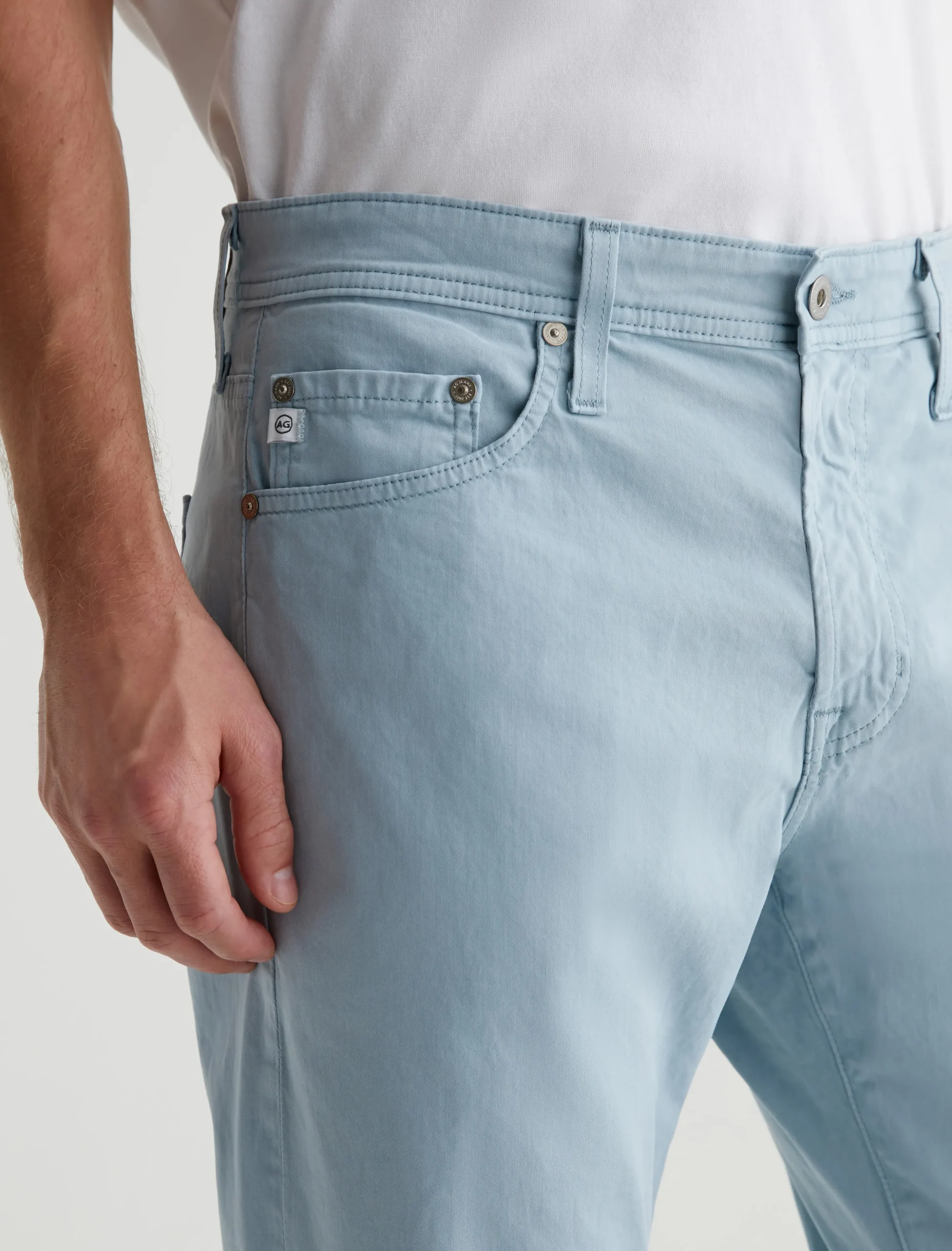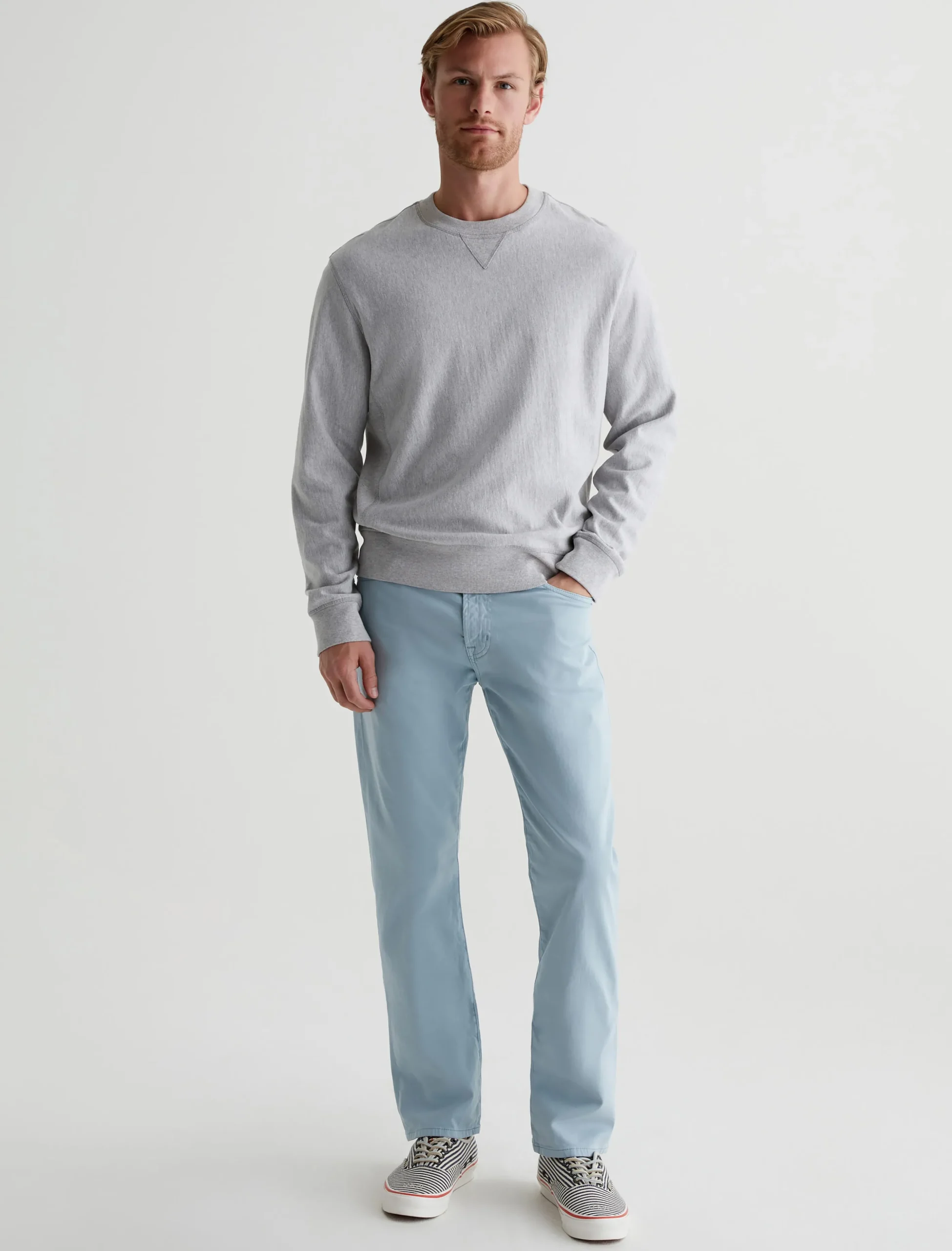 Everett is a slim straight men’s jean crafted from 8.4 oz. Sueded Stretch Sateen in a pale blue shade. Soft and refined, this five-pocket style has a comfortable mid-rise waist and a straight fit that’s relaxed from hip to the knee before slightly tapering at the leg opening.