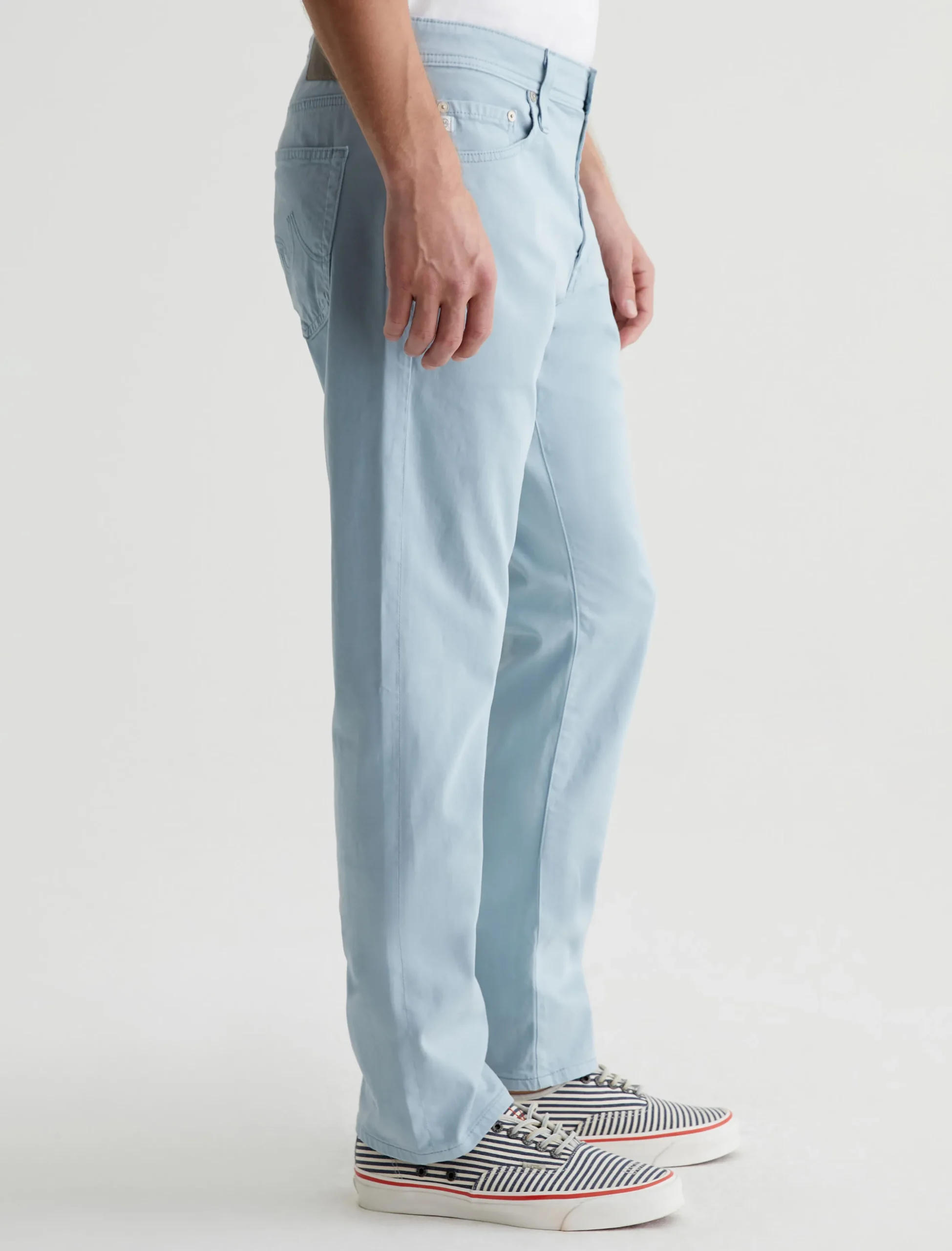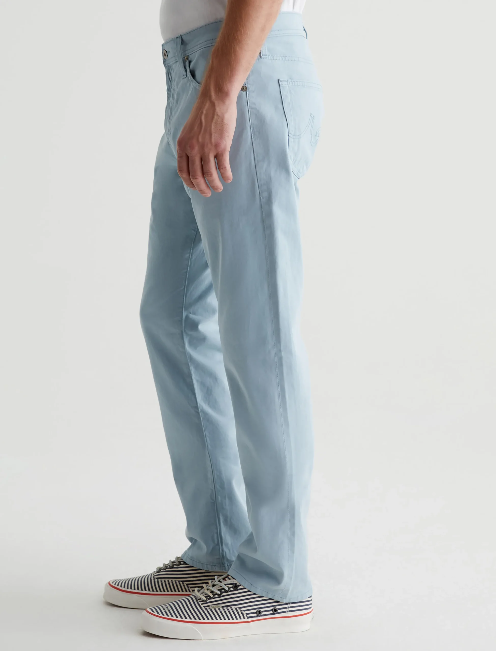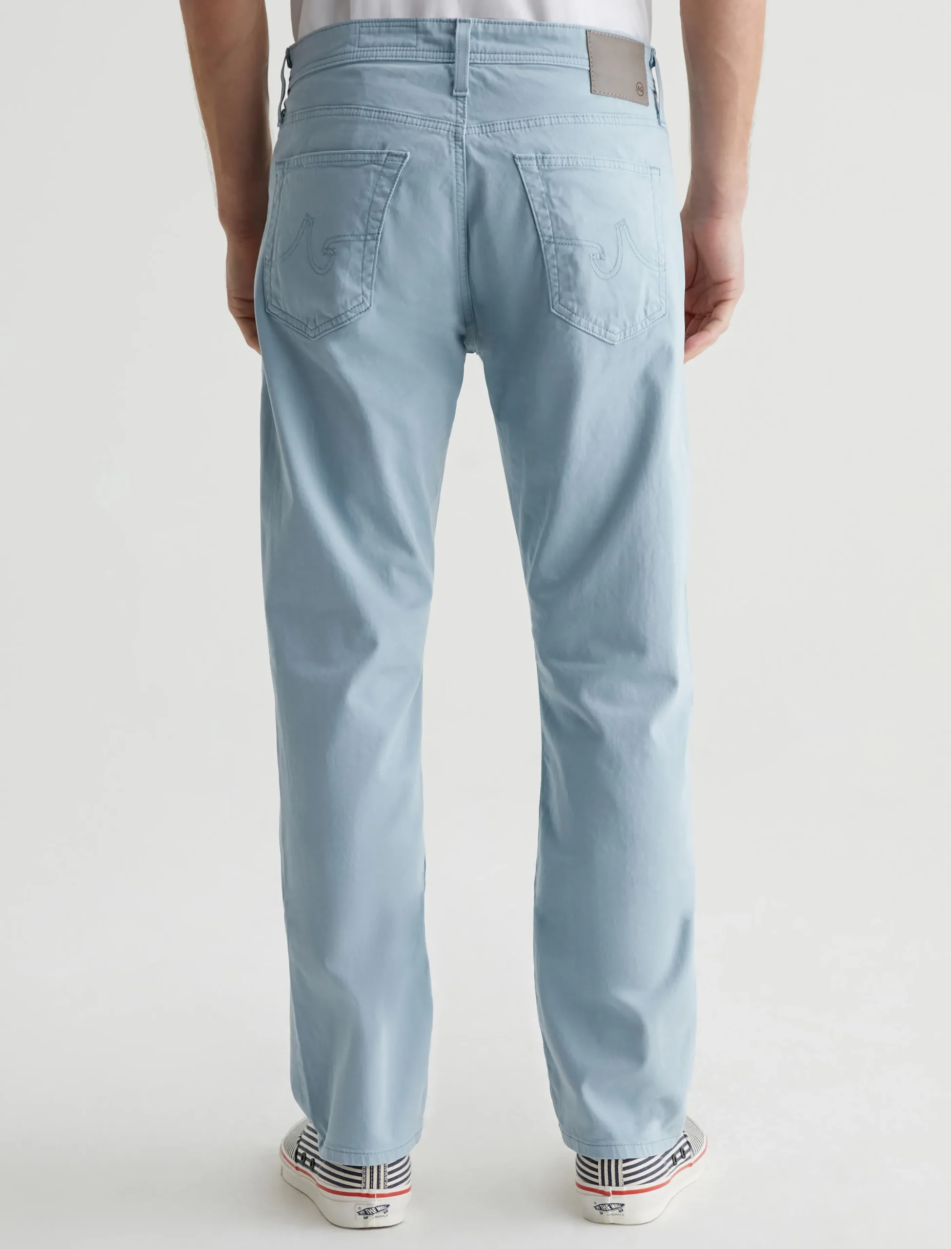 Everett is a slim straight men’s jean crafted from 8.4 oz. Sueded Stretch Sateen in a pale blue shade. Soft and refined, this five-pocket style has a comfortable mid-rise waist and a straight fit that’s relaxed from hip to the knee before slightly tapering at the leg opening.