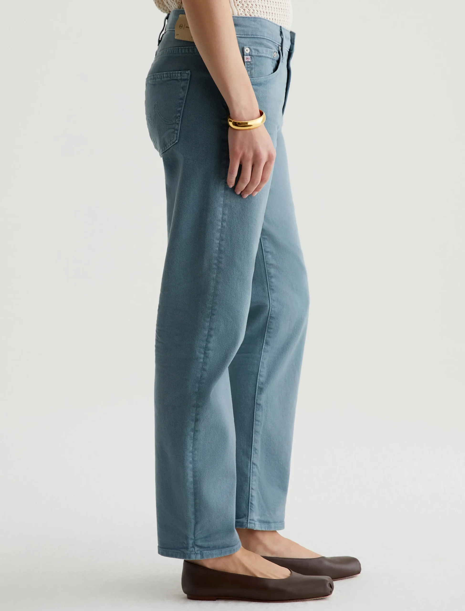 Our Ex-Boyfriend Slim jean features a slouchy fit with a mid-rise waist. Done in a sulfur-dyed sea blue shade, it’s got an AG-ed™ finish to emulate one year of authentic wear. These relaxed women’s jeans are crafted from 8.7 oz. Hyper Soft Bull Denim. This exclusive AG Cloud Soft Denim™ has special left-hand twill construction that allows the yarns to gently relax and untwist for a luxe, supple feel. It’s designed to get even softer the more you wear it. Dual-elastic stretch offers enhanced comfort and a resilient shape.