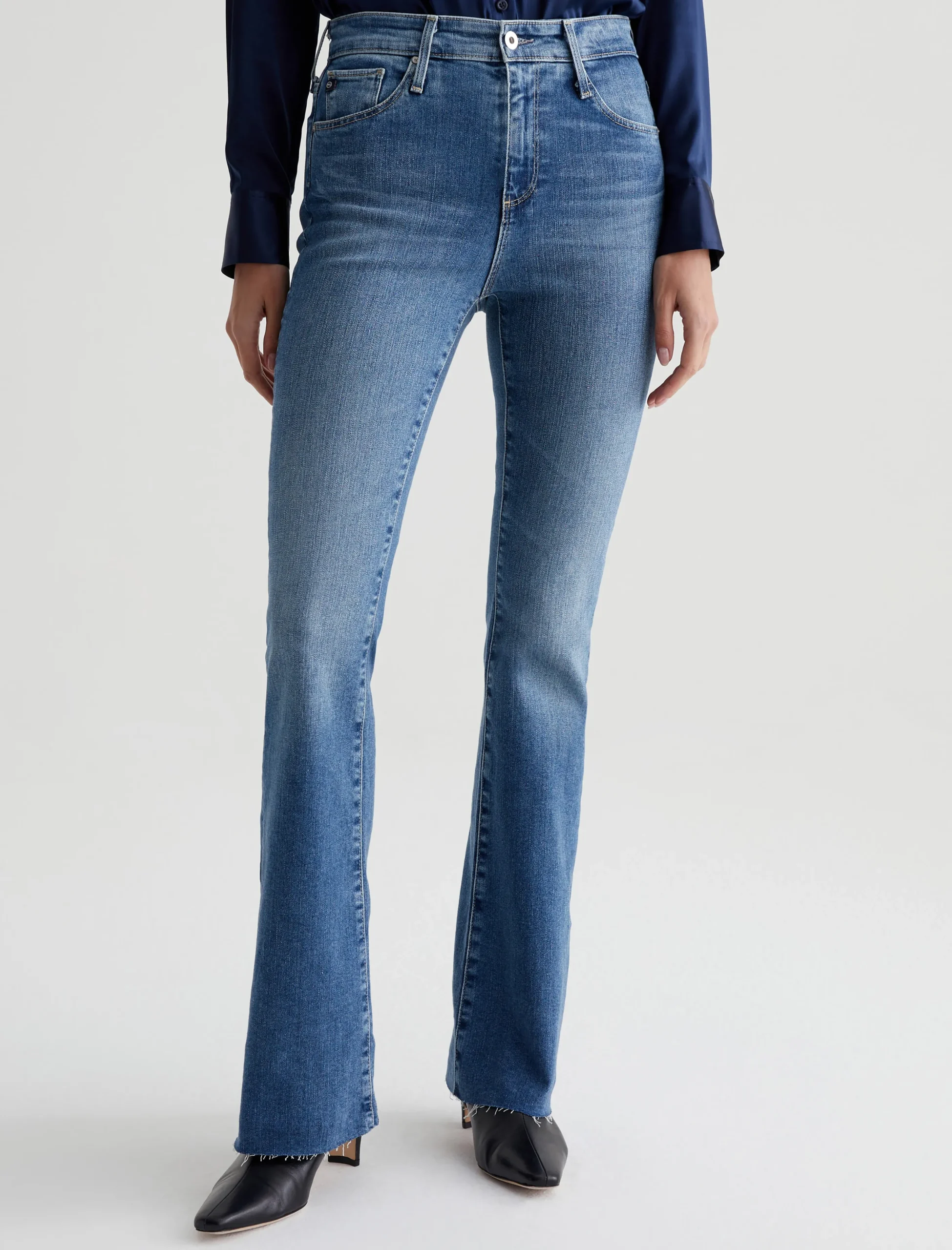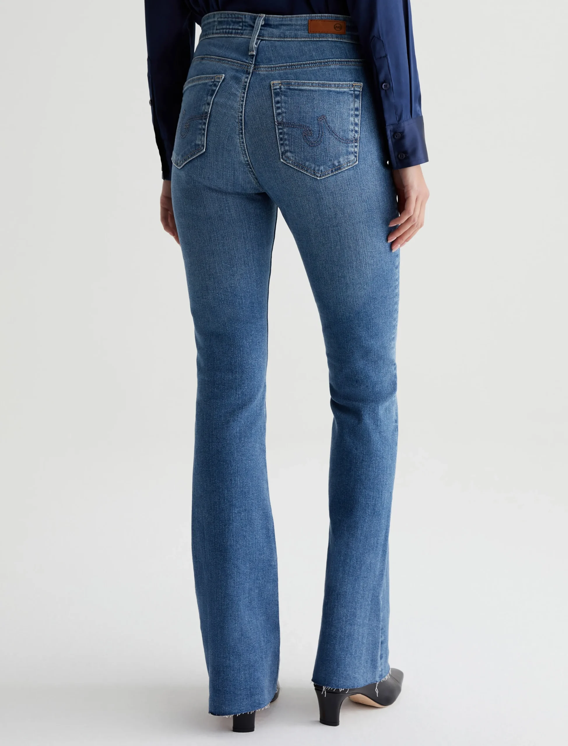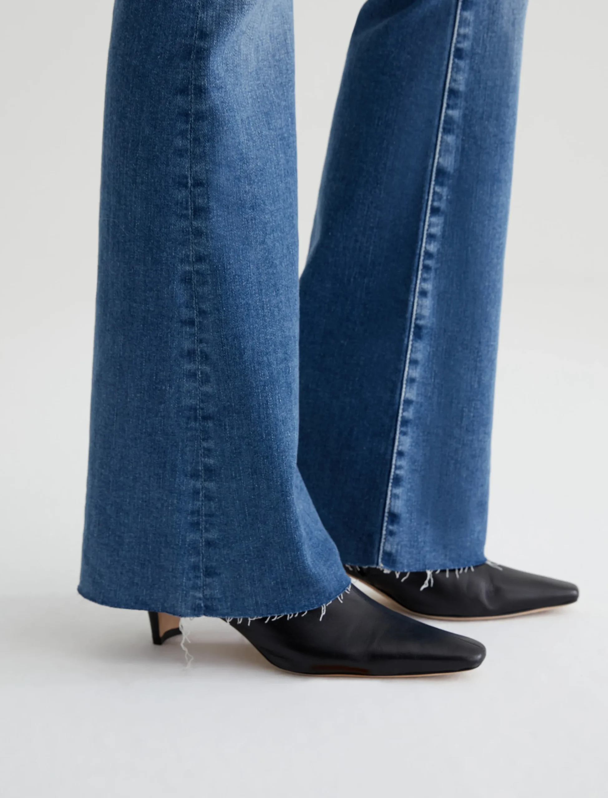 The Farrah Boot is our new mid-rise bootcut jean in a medium indigo wash with fading and whiskering. The pair sits right at the natural waist and has a skinny fit through the leg before opening into a subtly flared raw hem. This women’s bootcut jean is designed in 10 oz. Rouge Advance Stretch Denim for a flattering shape and added mobility.