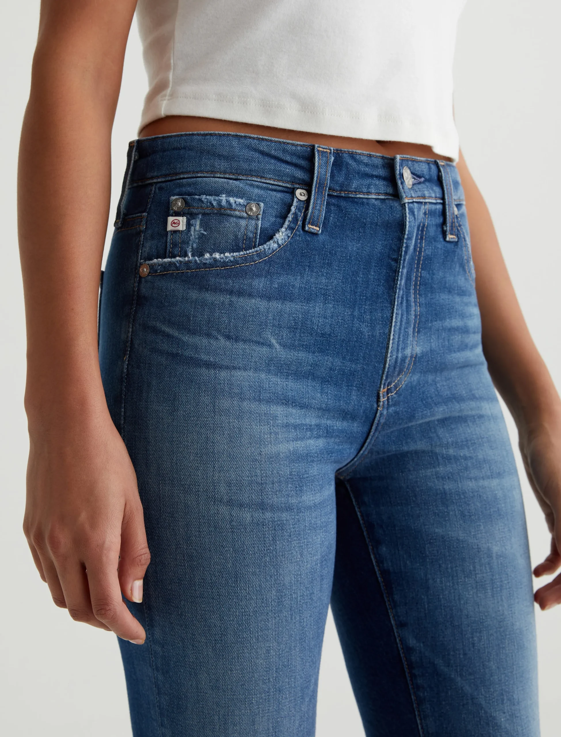 The Farrah Boot is our mid-rise bootcut jean in a medium indigo wash with a 14-year AG-ed™ Denim finish. It’s faded and whiskered, finished by touches of distressing at the pockets and hems. Crafted from stretch-blend 11 oz. Journey Denim, the pair sits right at the natural waist and has a skinny fit through the legs before opening into a subtly flared shape.
