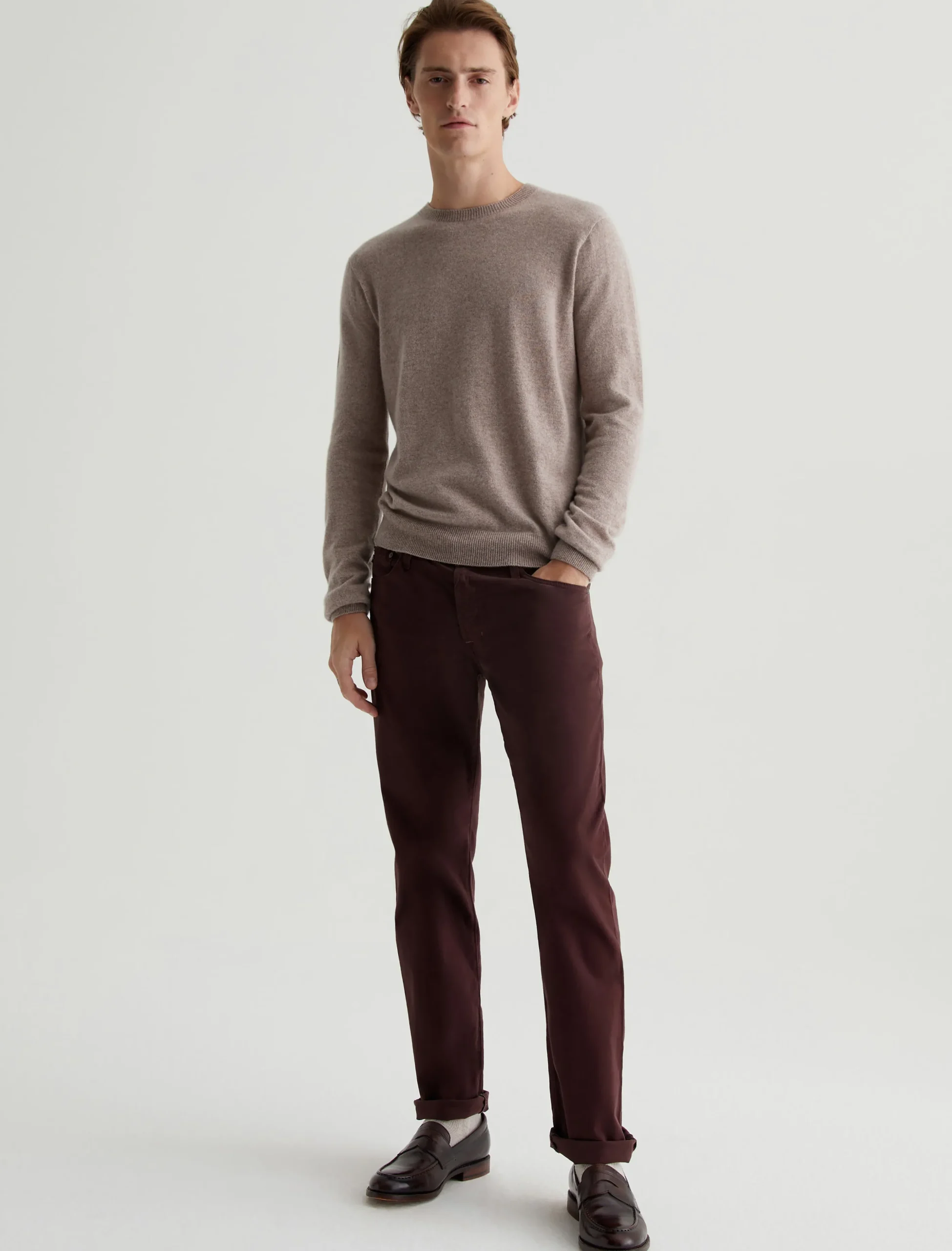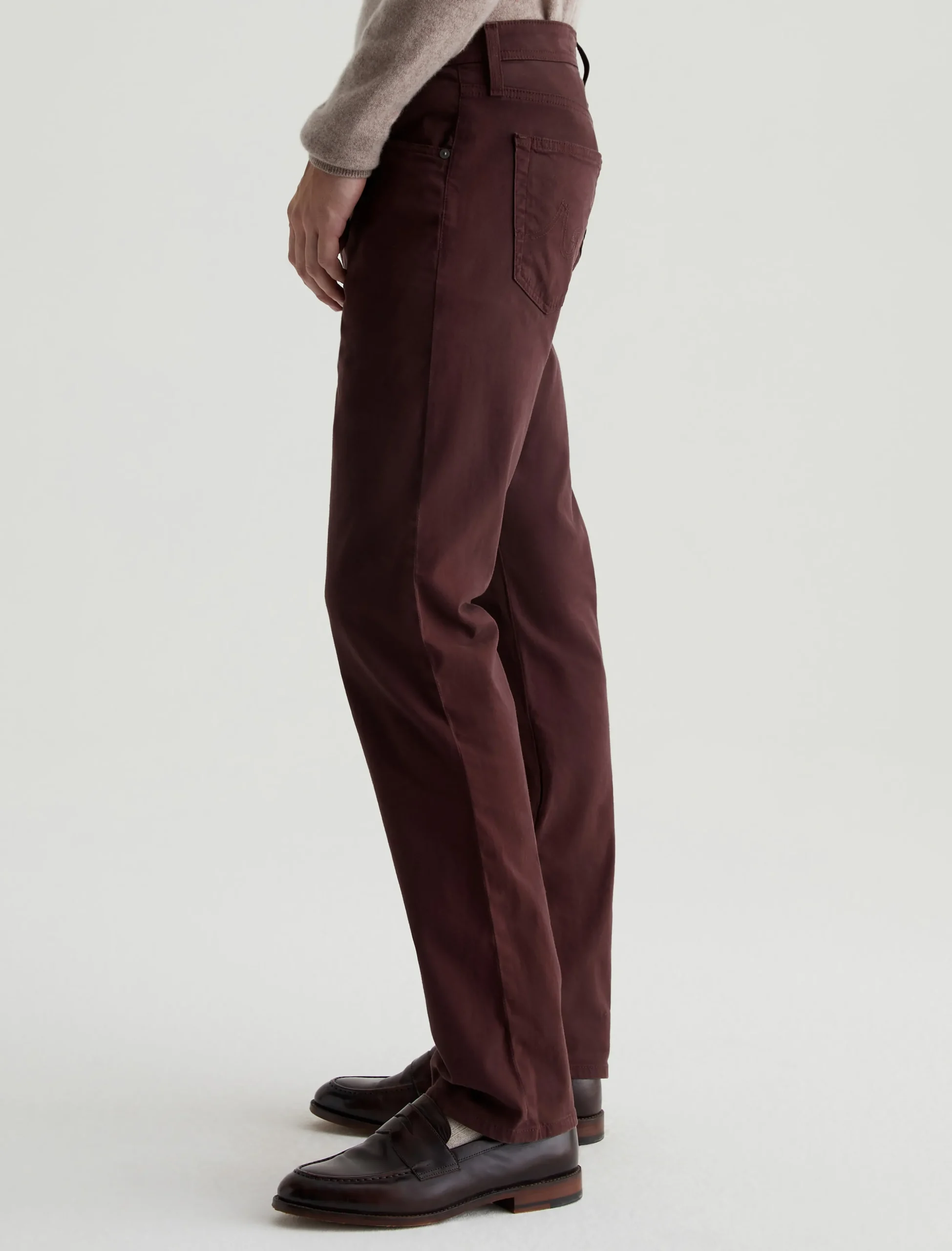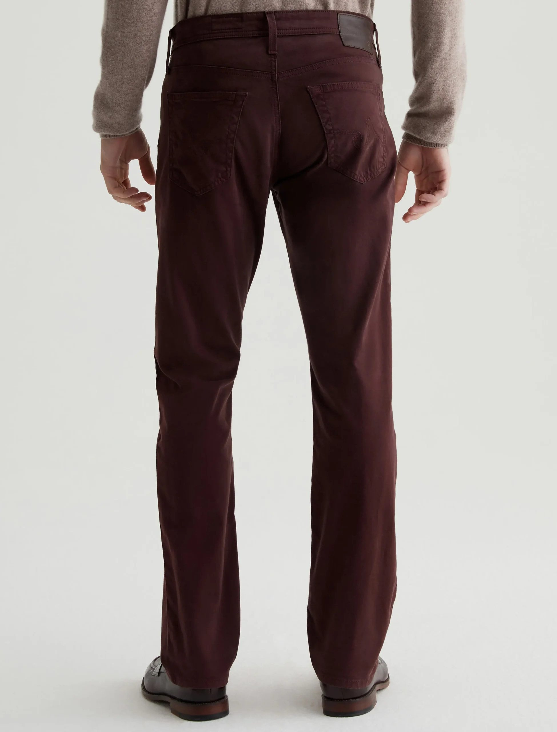The Graduate is a tailored leg jean for men, updated here in 8.4 oz. Sueded Stretch Sateen with a soft, refined texture. Done in a rich burgundy shade, this 5-pocket pair has a slim mid-rise waist and a relaxed fit from hip to knee before tapering at the leg opening.
