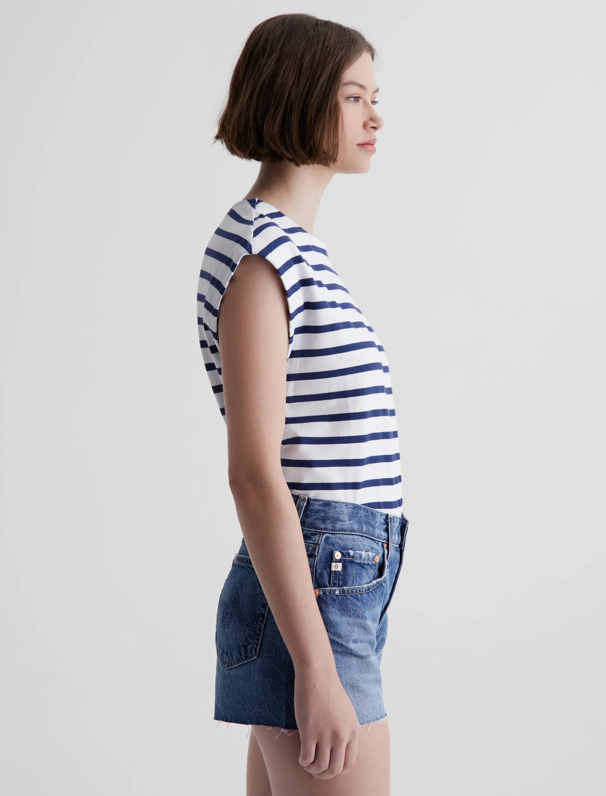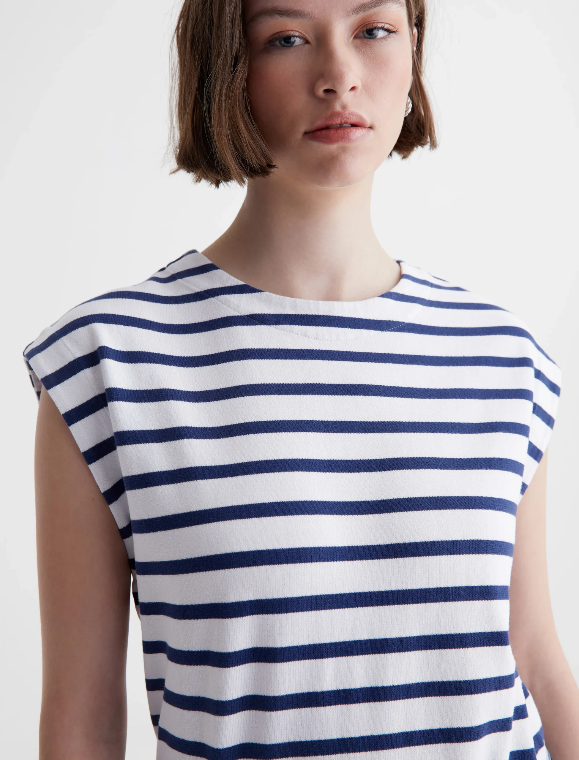 Crafted from striped cotton jersey, the Lyra muscle tank is designed with a crew neckline and a relaxed, easy shape. An effortless base layer to wear with denim, crisp white pants, or your favorite shorts.