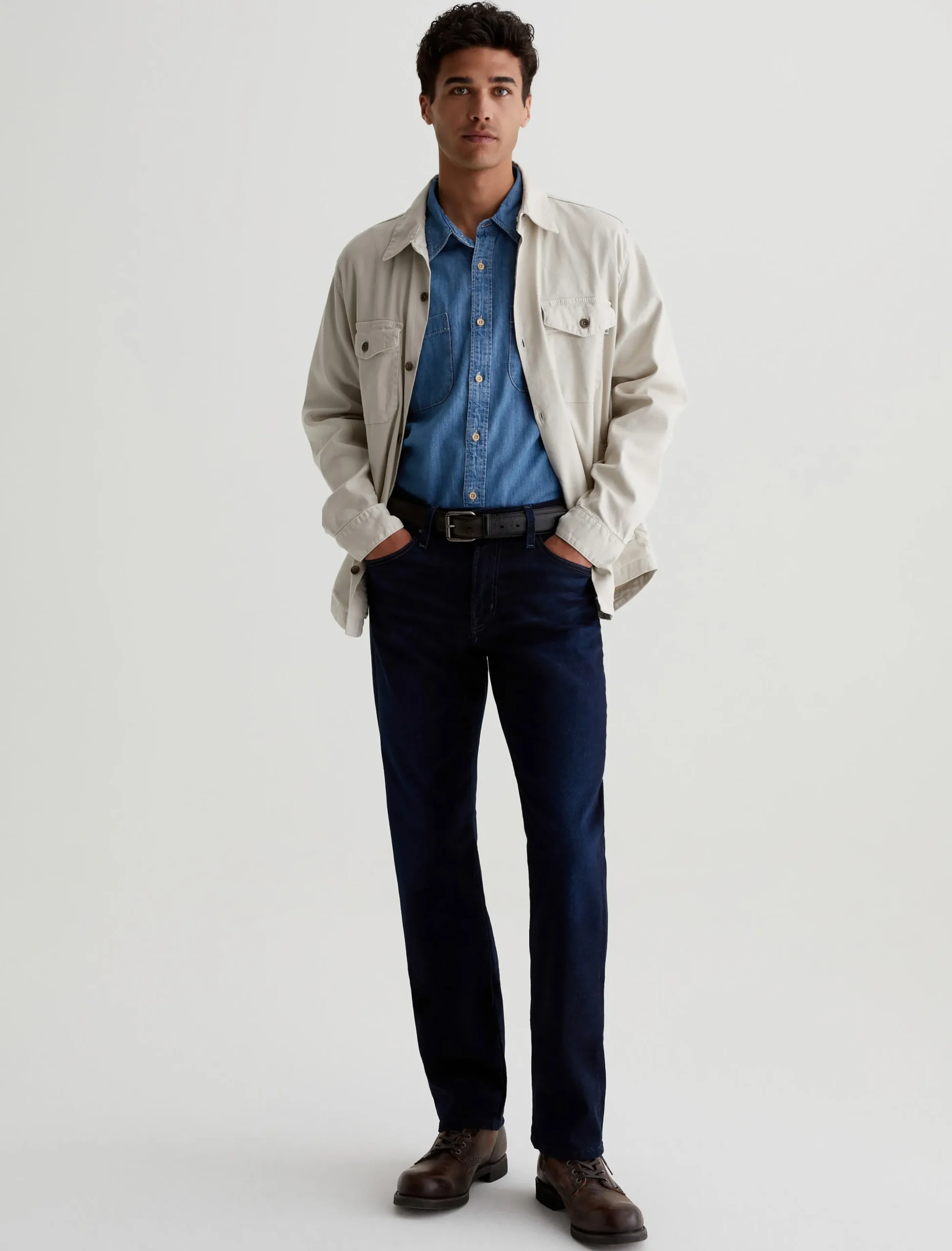 A true customer favorite, our Protégé classic straight fit is back by popular demand. The signature AG style features timeless five-pocket construction with an easy fit through the thighs and a clean finish at the leg openings. Crafted from 9.4 oz. Hyper Soft Indigo Denim, our exclusive AG Cloud Soft Denim™ fabric with a velvety texture. The special left-hand twill construction allows the yarns to gently relax and untwist for a supple feel that gets even softer with wear. It’s got dual-elastic performance fibers built in for added stretch and recovery.