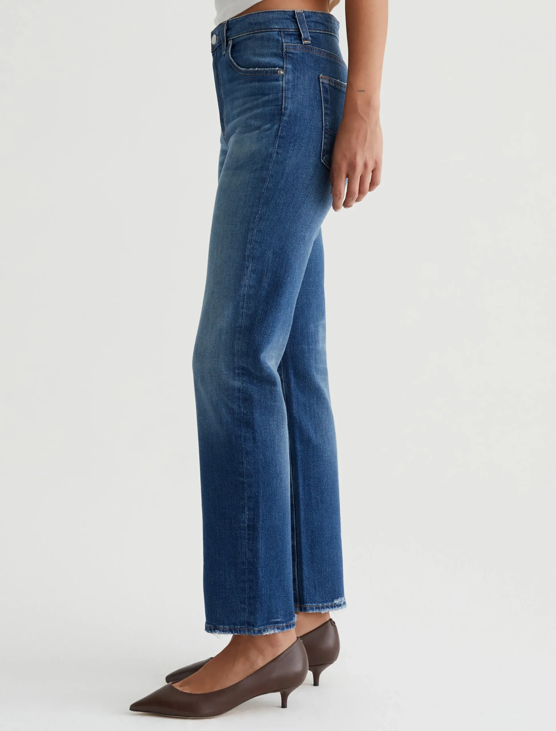 Saige is a women’s mid-rise straight jean, done here in a medium blue wash with a 14-year AG-ed™ Denim finish. Whiskering and touches of distressing at the pockets and hems add a naturally lived-in appearance. Made from 11 oz. Journey Denim, these five-pocket jeans have stretch built in for enhanced comfort.