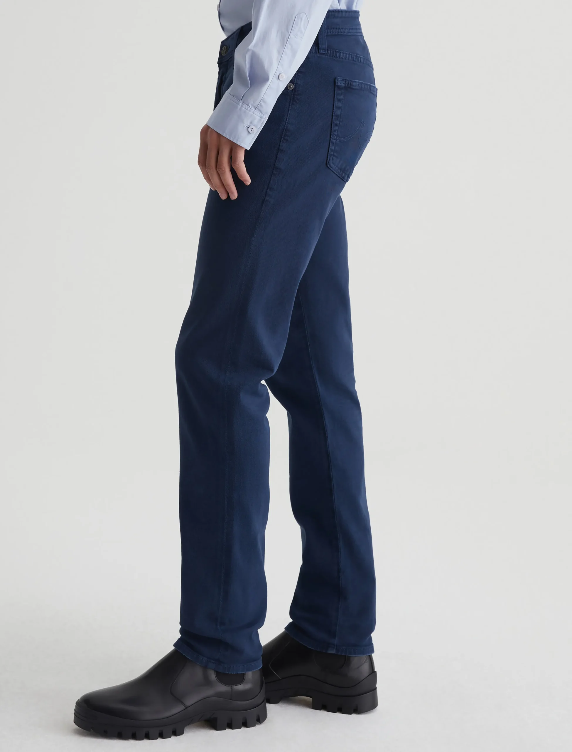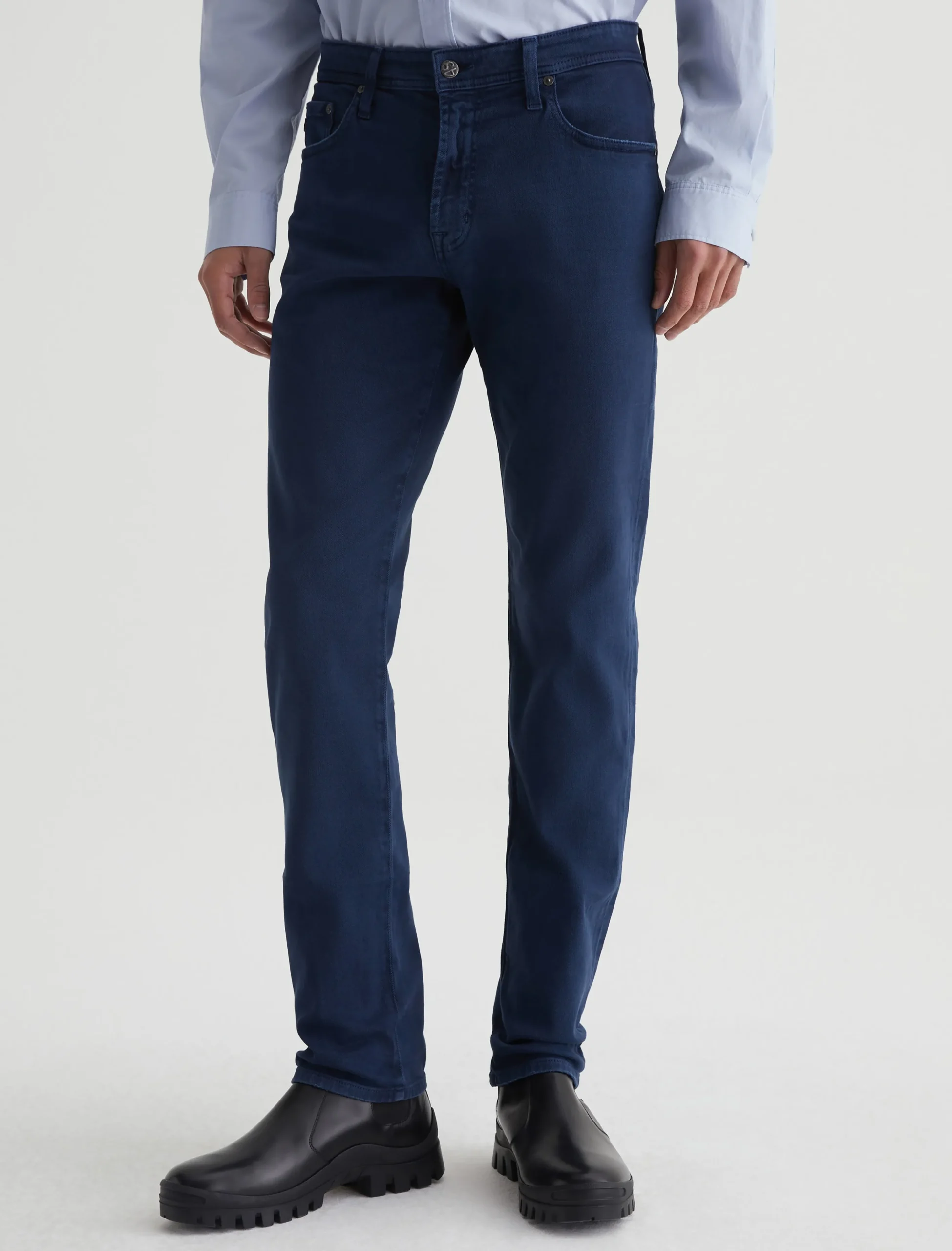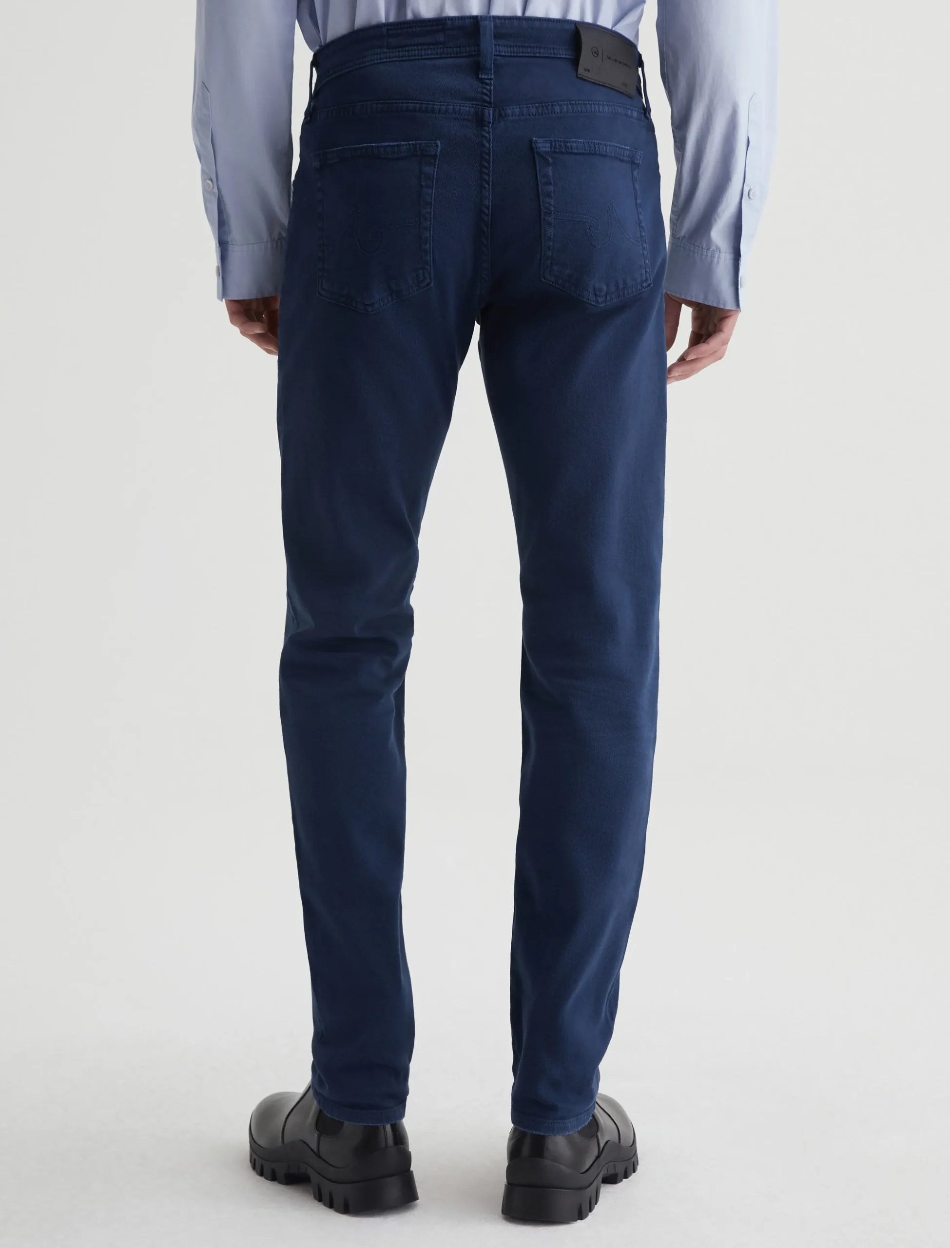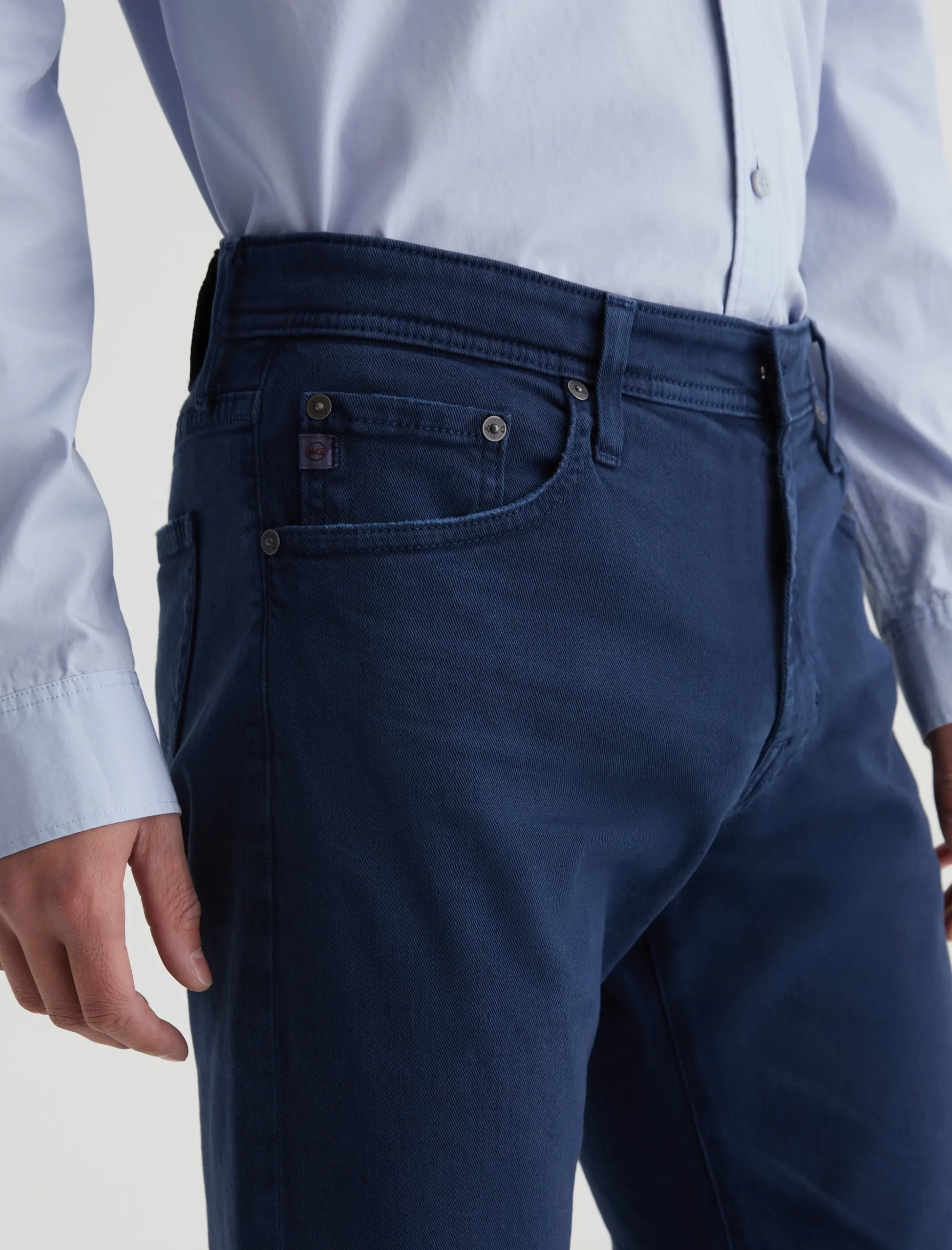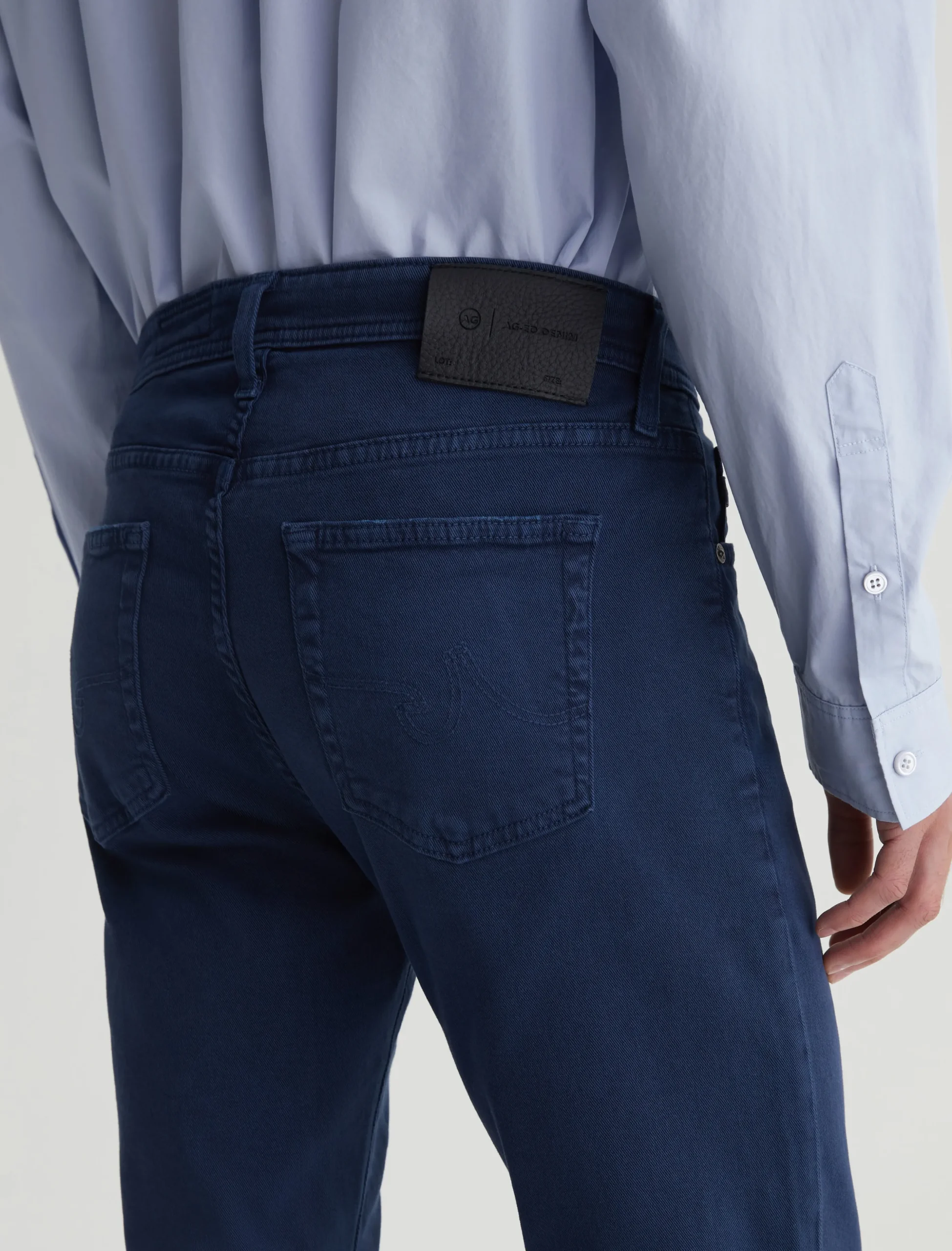 Tellis is a modern slim jean for men, updated in an AG-ed™ sulfur-dyed navy shade. These five-pocket jeans have a fitted upper block and a tapered leg opening in 8.7 oz. Hyper Soft Bull Denim, a velvety stretch-blend fabric from our AG Cloud Soft Denim™ offering. This left-hand twill fabric has special construction that allows the yarns to gently relax and untwist for a supple feel. It’s designed to get softer with every wear.