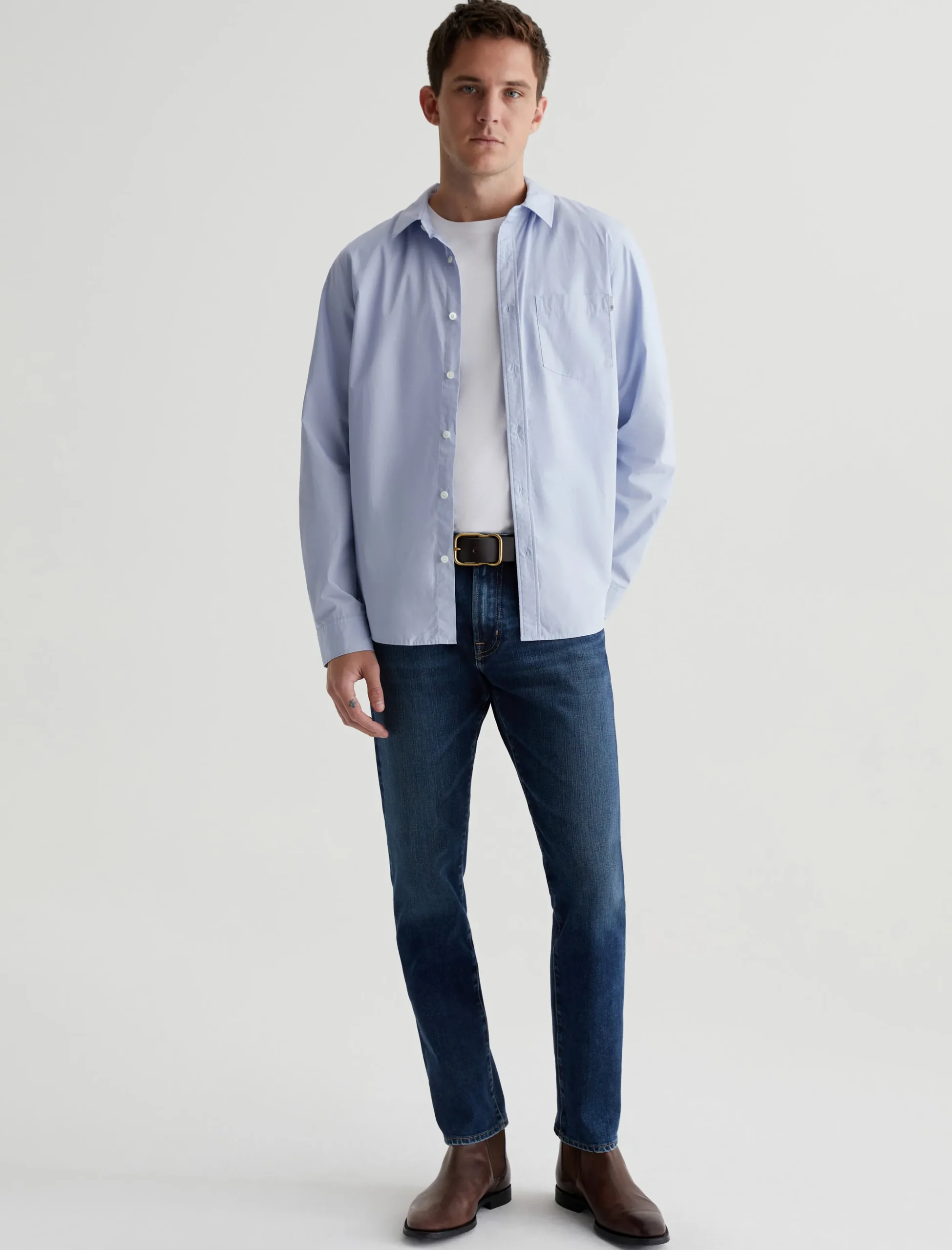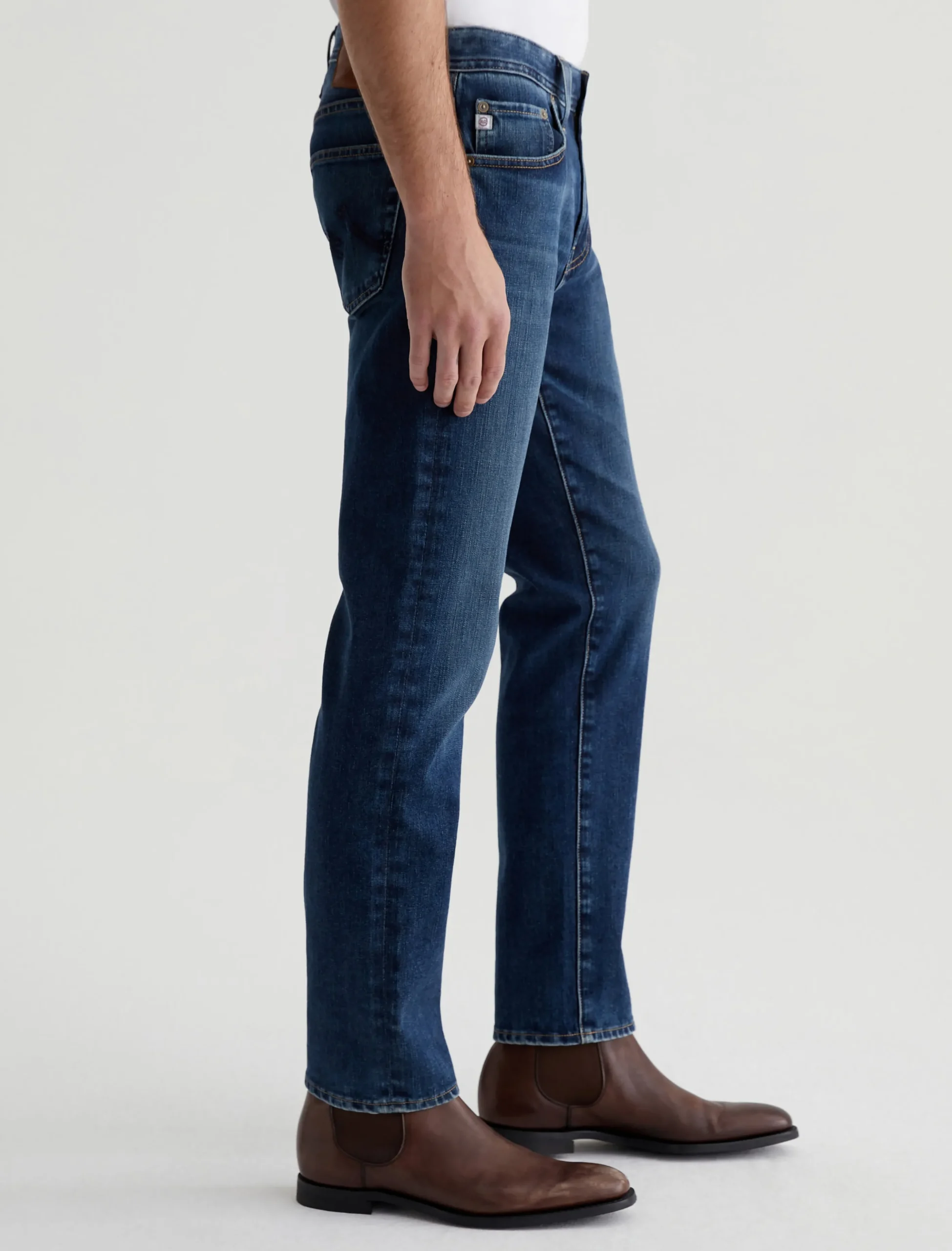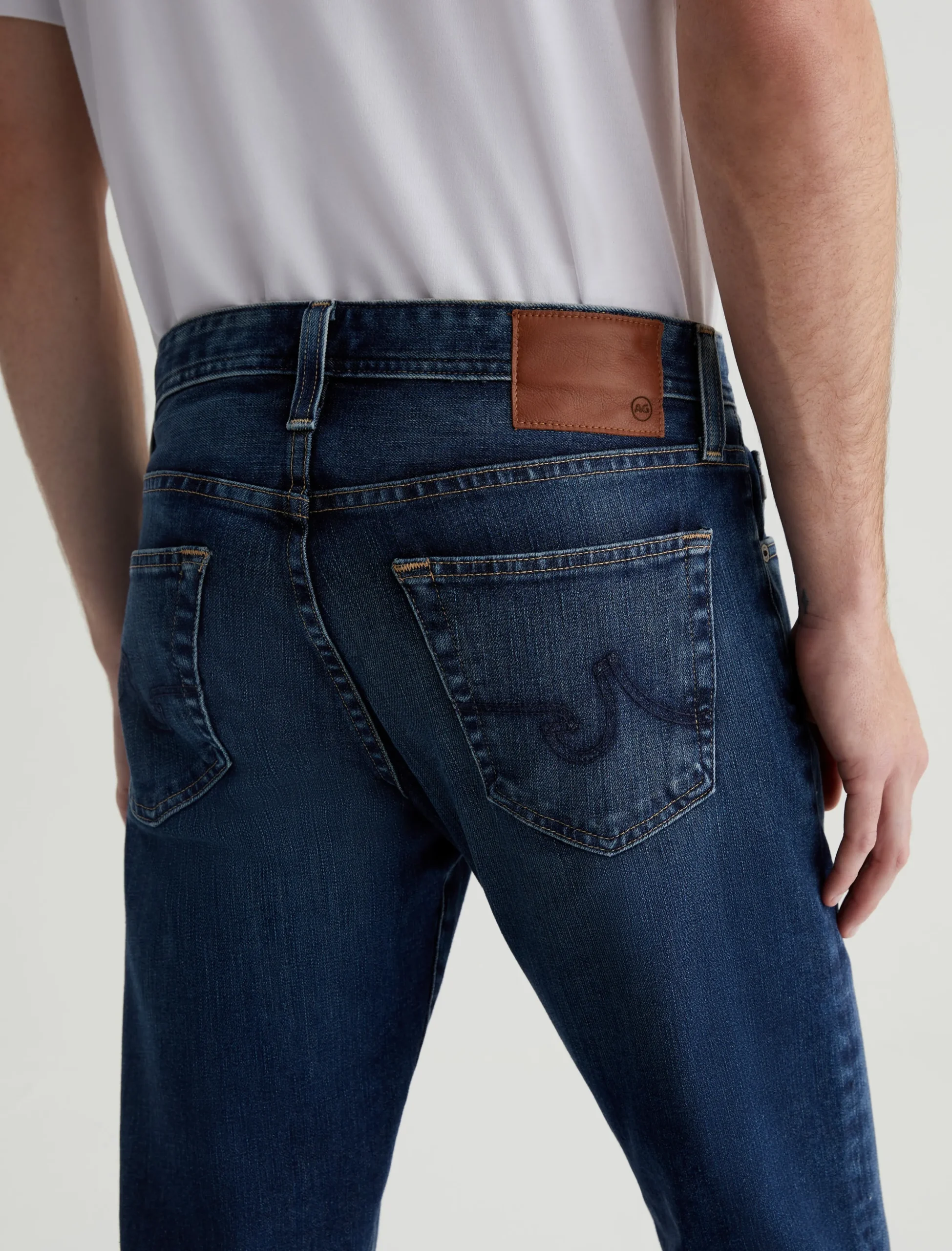 The Tellis modern slim jean for men features a fitted upper block and tapered leg opening. It’s washed to a medium indigo shade with fading, whiskering, and unique variations of color at the seams and edges. These men’s slim-fit jeans are designed in 11 oz. Flex 360° Denim for a luxurious feel, premium look, and all-day comfort.