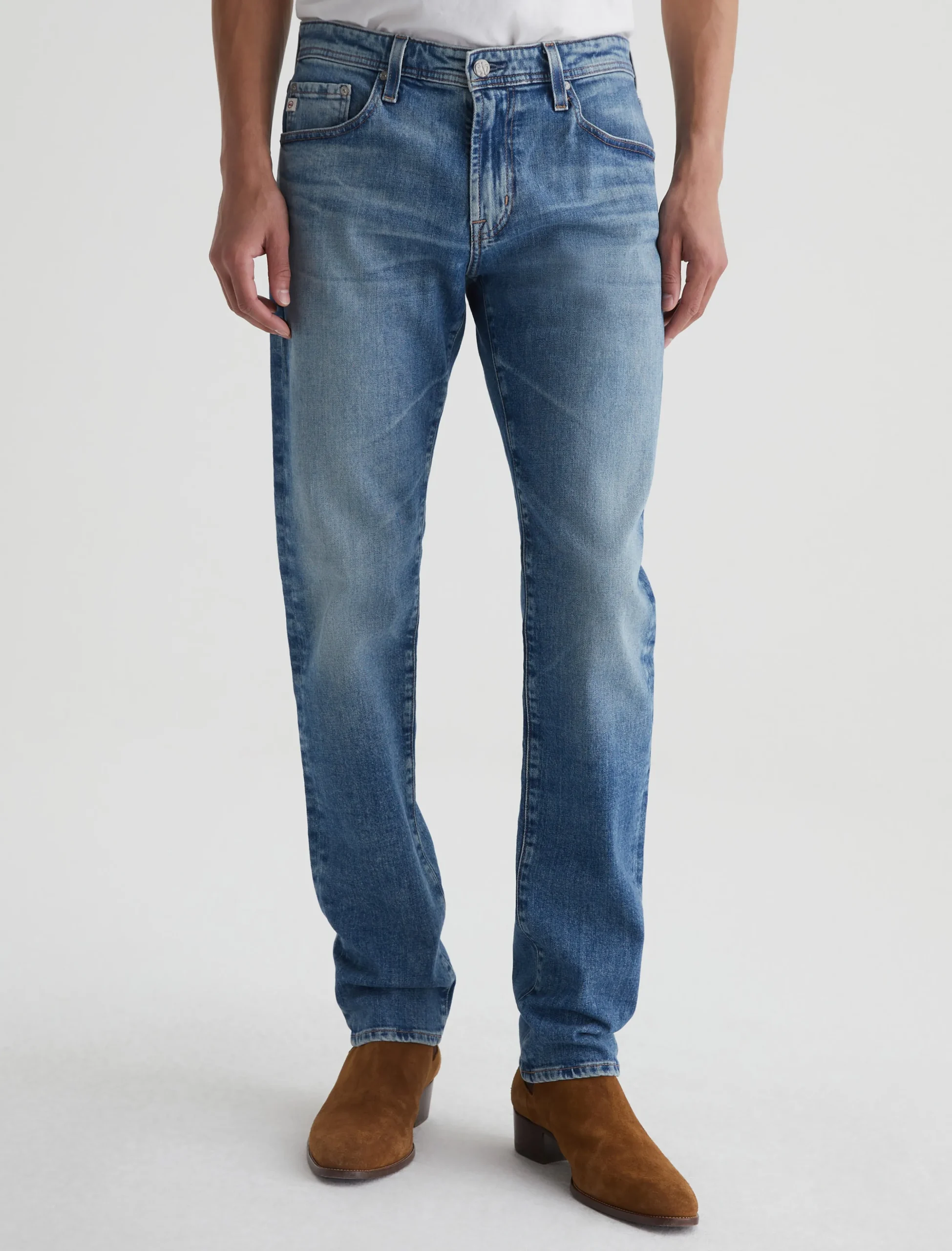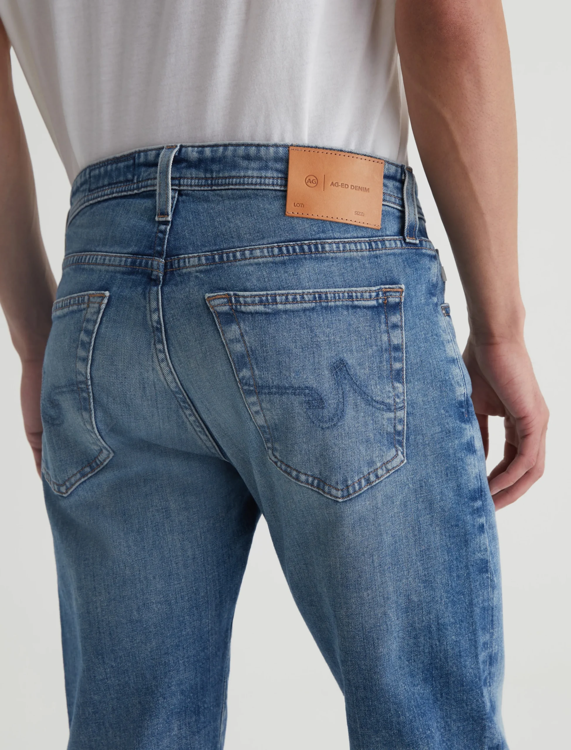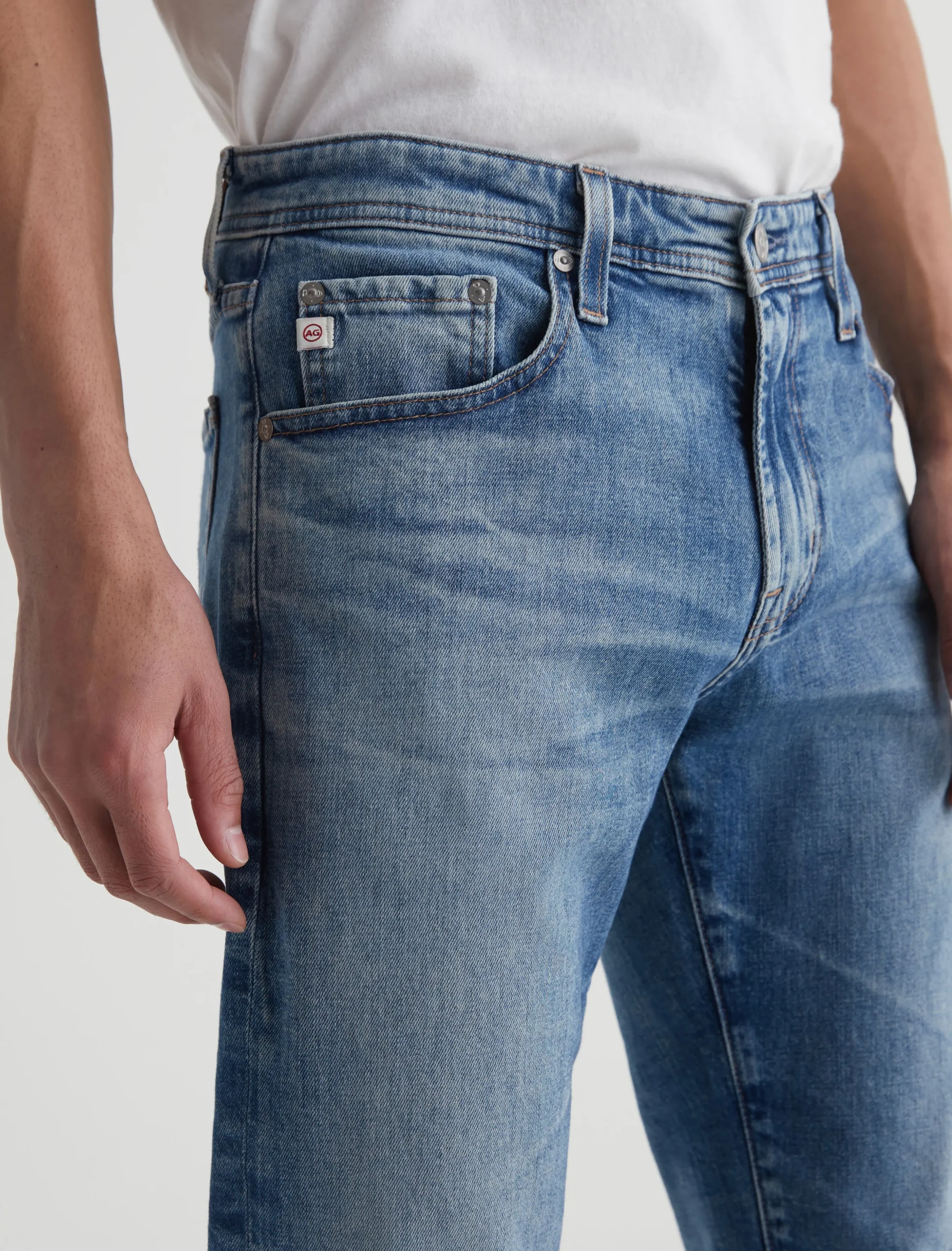 Tellis is our signature modern slim fit for men, updated here in a light blue wash with an AG-ed™ 19-year fade. The style has a mid-rise waist and a relaxed fit from hip to the knee before tapering at the leg opening. These 5-pocket men’s jeans are cut from 11 oz. Journey Denim that’s blended with stretch for elevated comfort.