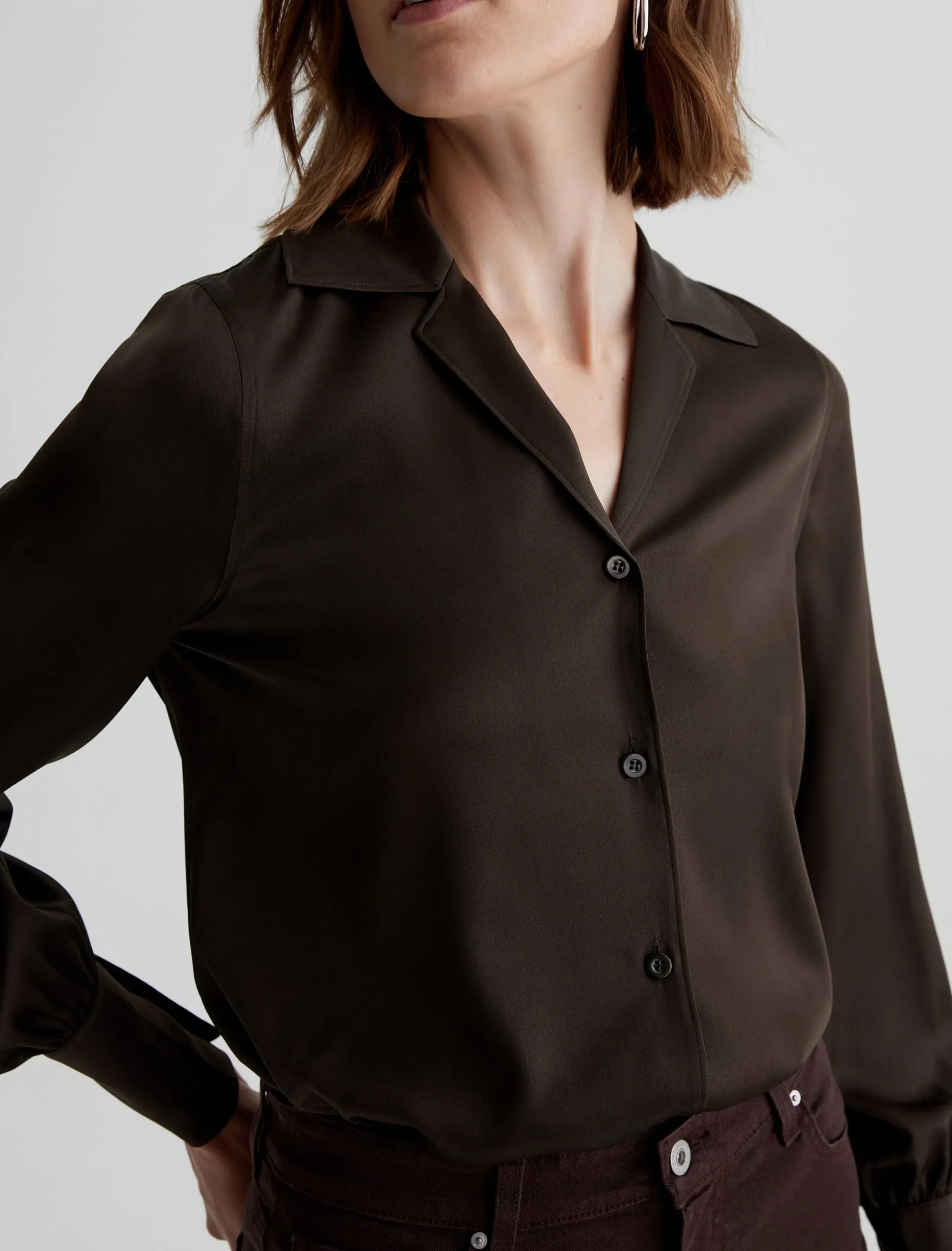 Perfect for any season, the Valerie Blouse is crafted from lustrous silk twill woven with a touch of stretch. A notched collar opens the neckline, while puffed sleeves add subtle volume.